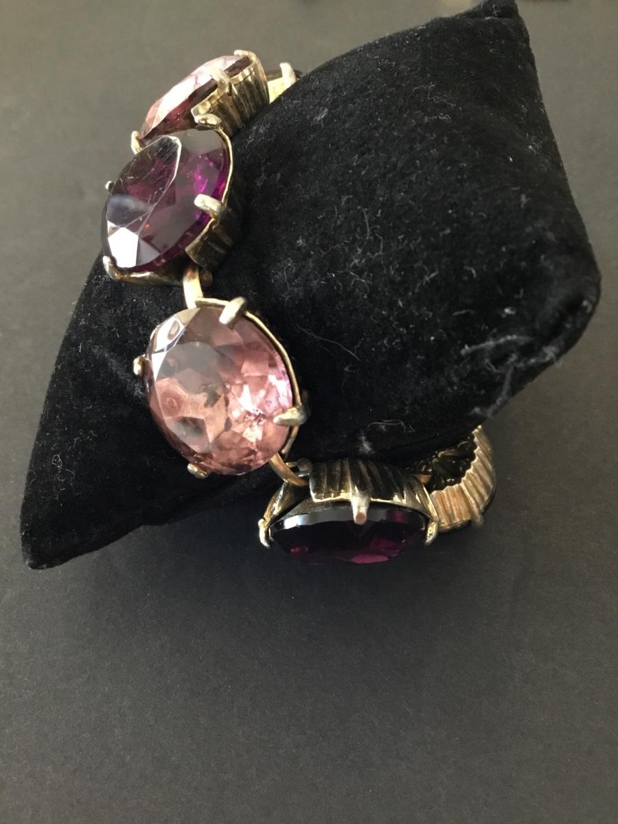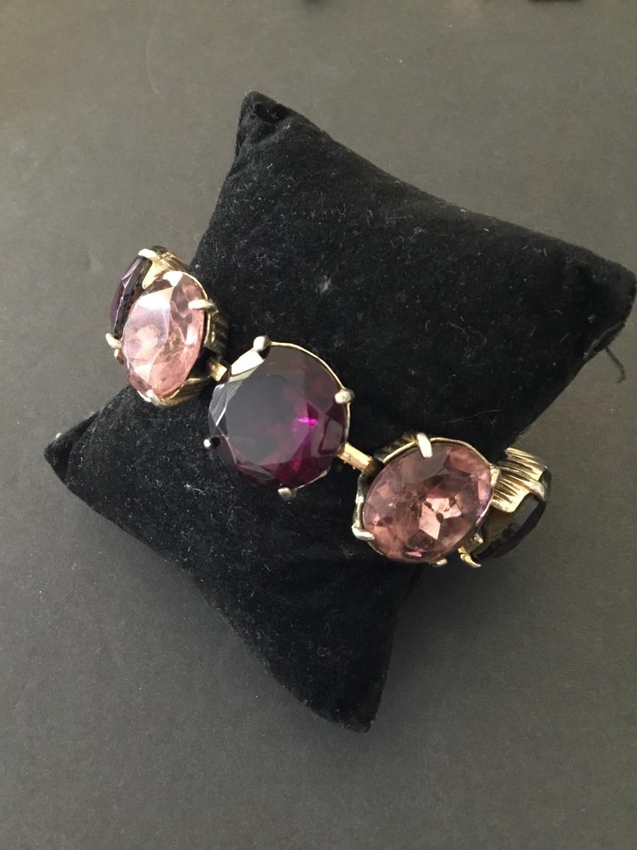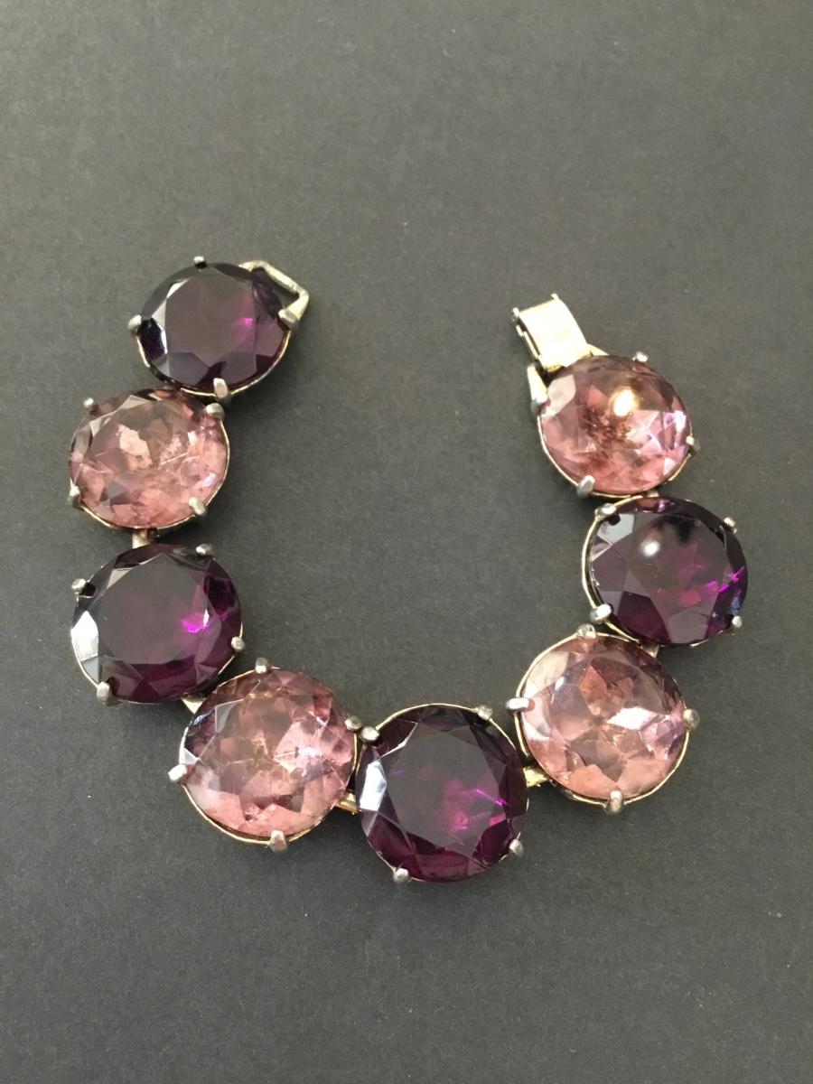 Vintage, heavy, pink, purple faceted glass, rhinestone link bracelet
