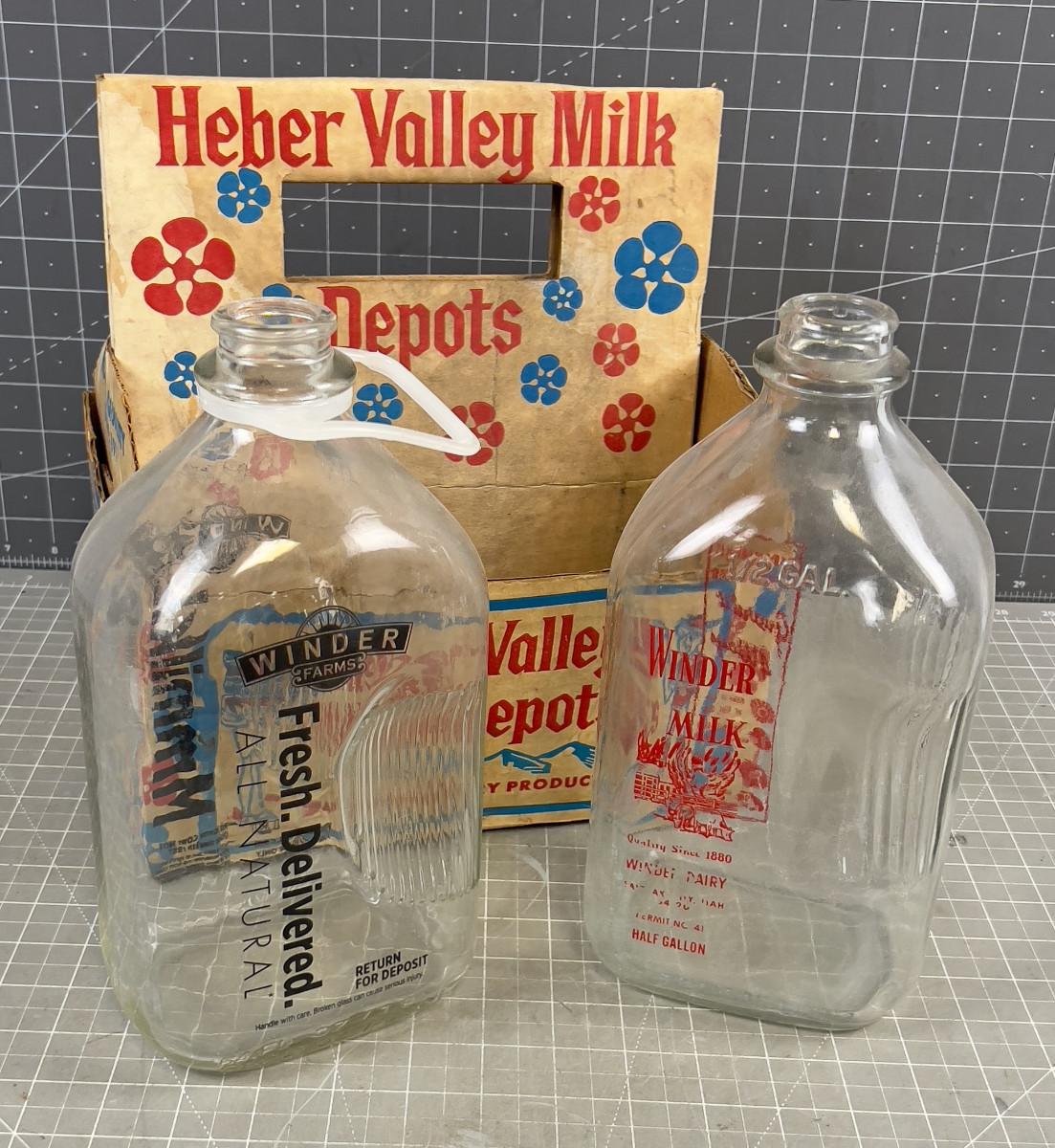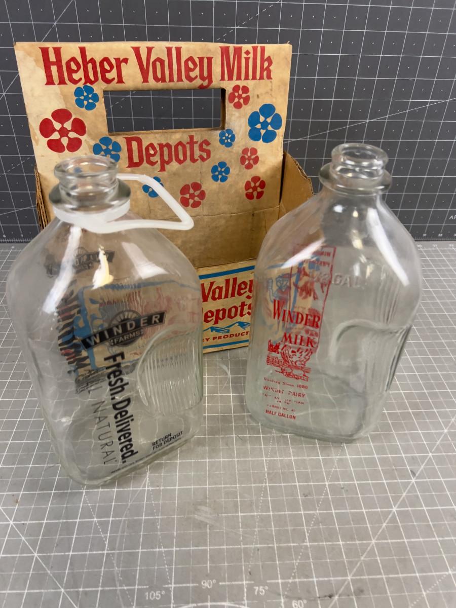 Vintage Heber Valley Milk Bottles and A Carton