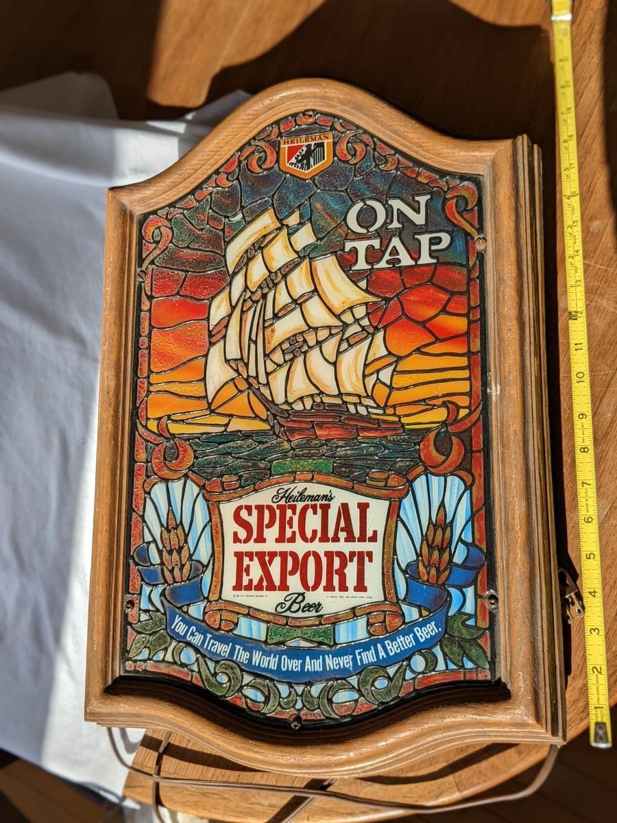 Vintage Heileman's Special Export Ship Beer Faux Stained Glass Sign Light