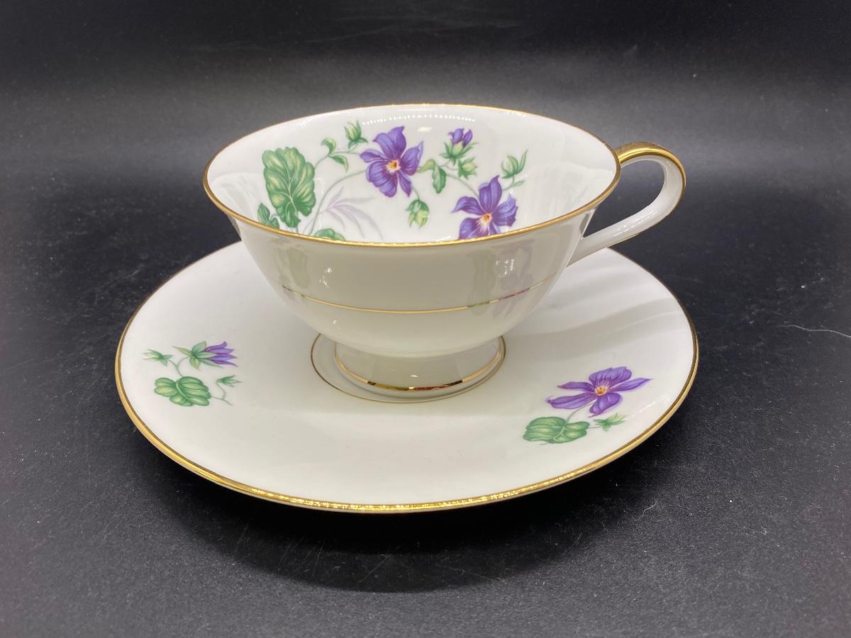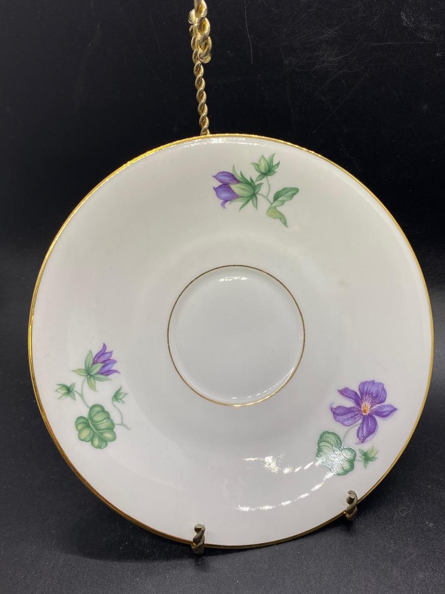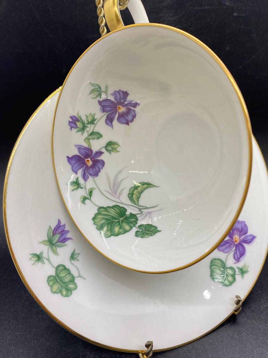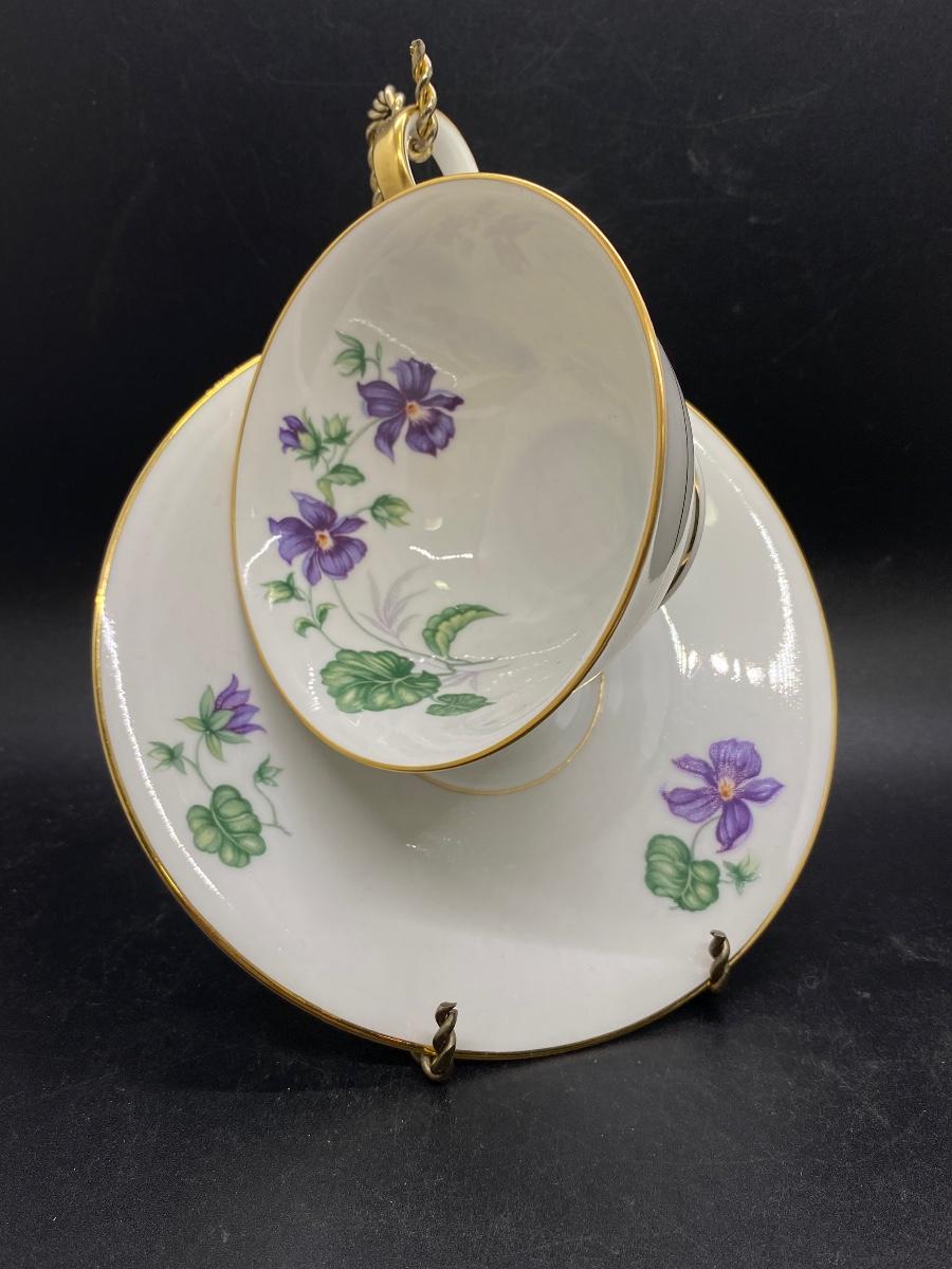 Vintage Heinrich Bavaria Tea Cup and Saucer Purple Violet Flowers
