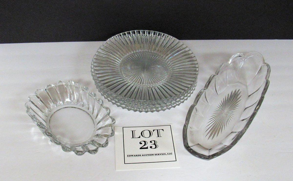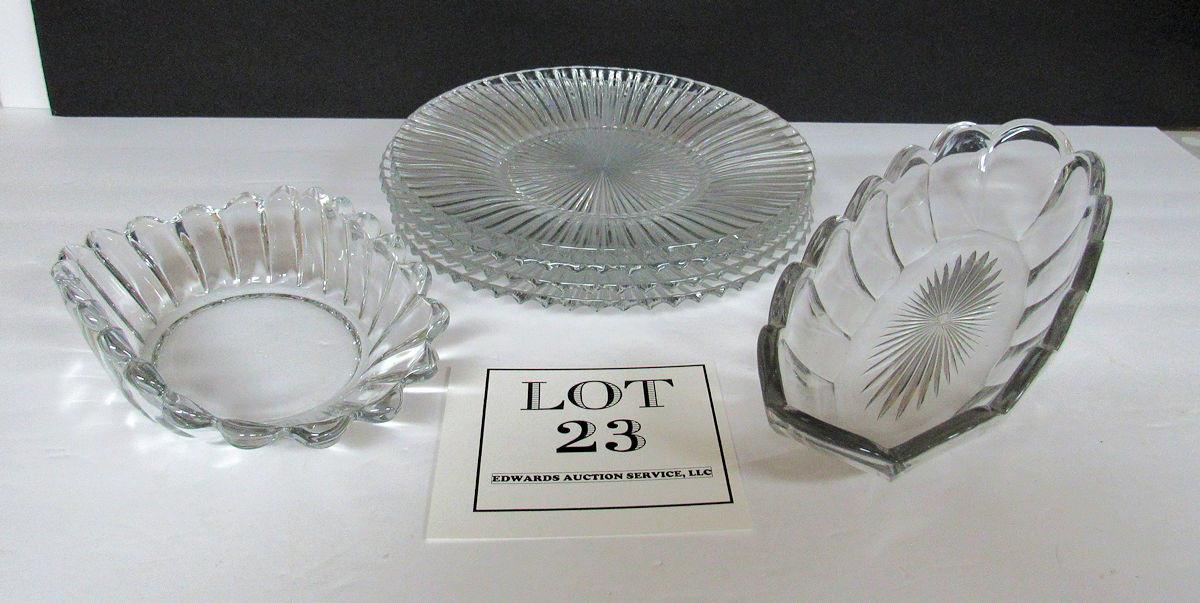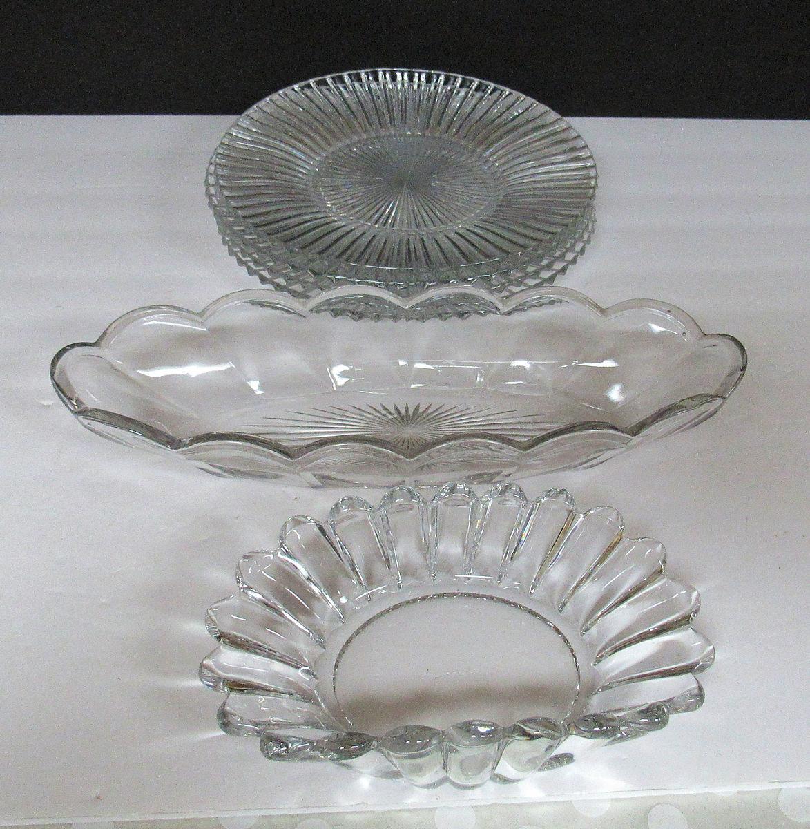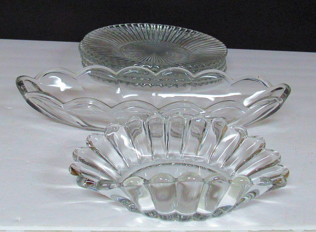 Vintage Heisey Glass Lot #1 Ridgeleigh Plates, Crystolite Oval Dish, Colonial Relish