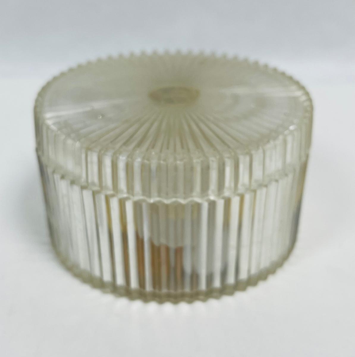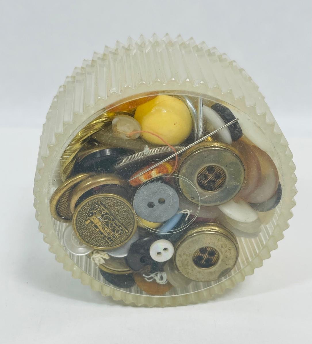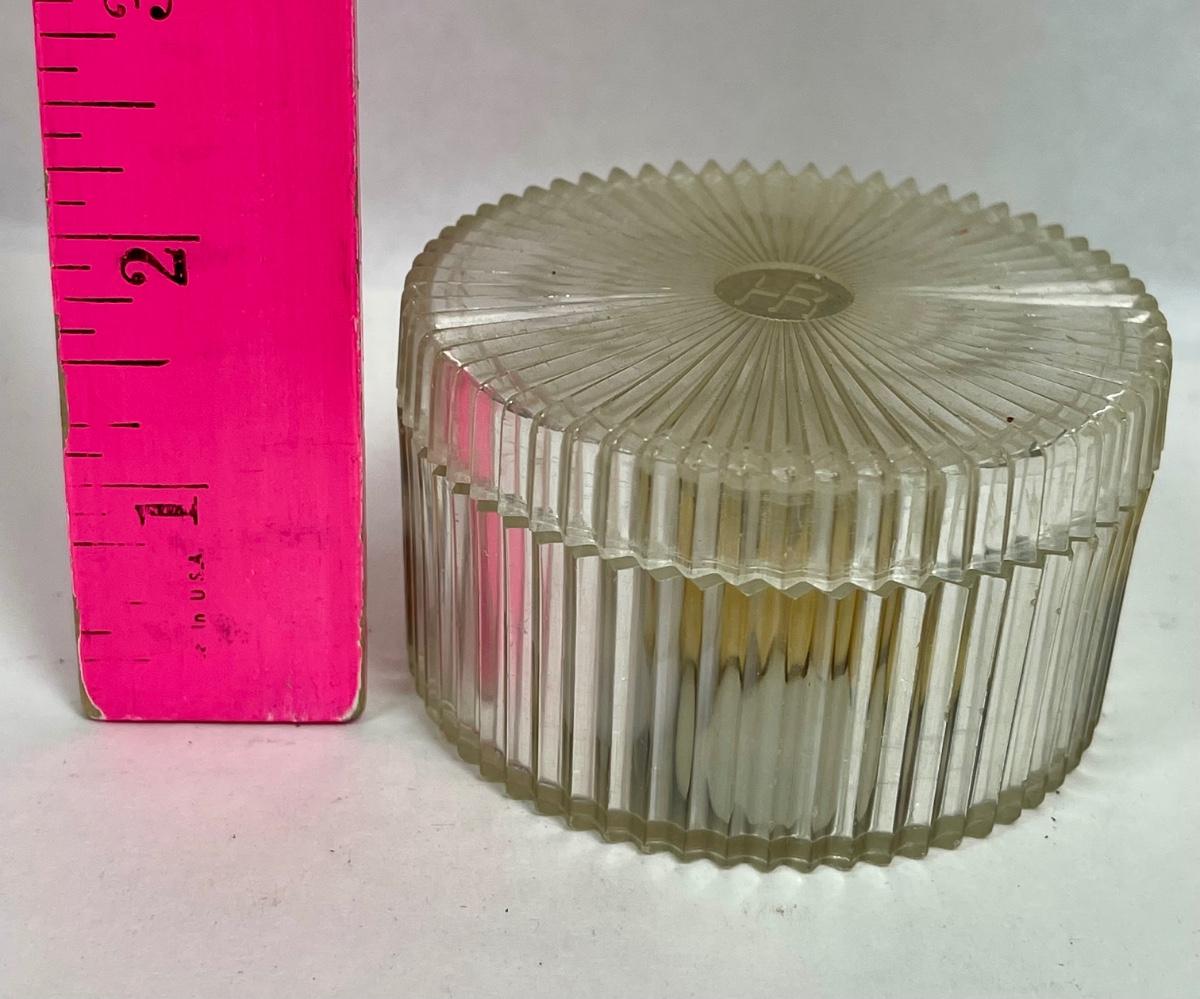 Vintage Helena Rubinstein Clear Round Lidded Lucite Vanity Powder Box with Old Button Collection