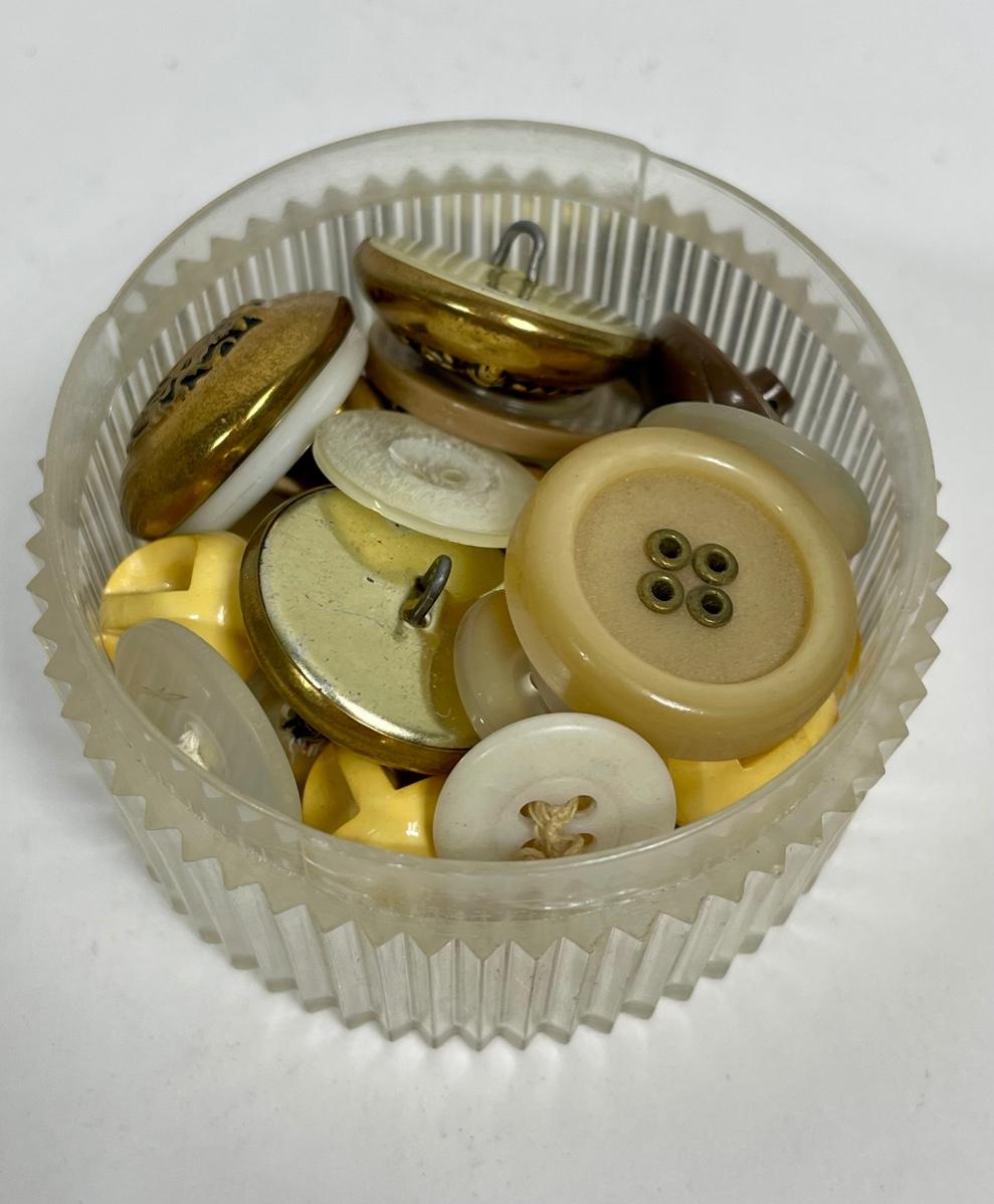 Surprise Button Collection, photographed as we found it. You can see through the bottom and the top, but who knows what lies between! The box alone is a find!