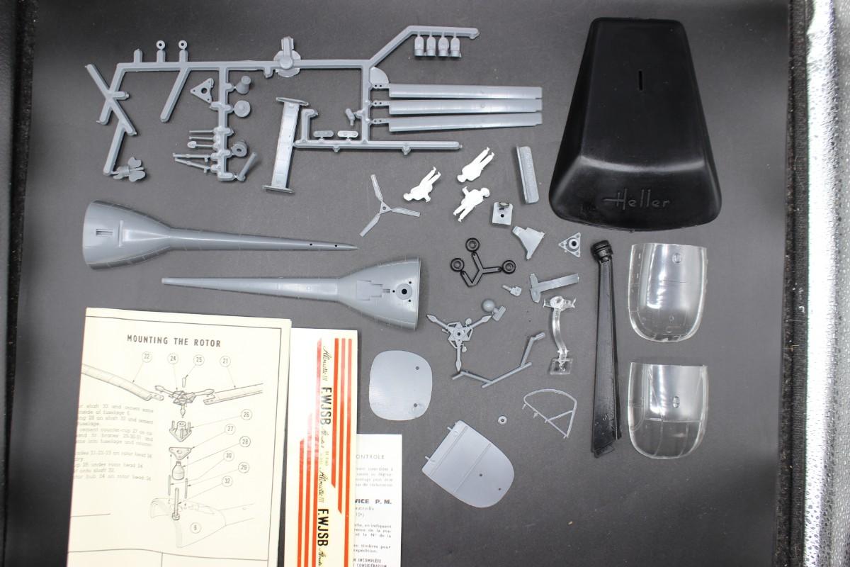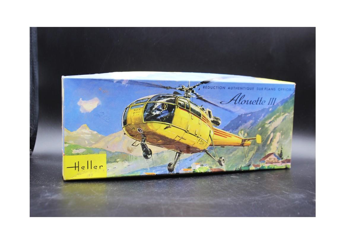 Vintage Heller Alouette III L 200 Model Helicopter Kit, there is no significant damage to the box or the plastic parts that come with the kit. Everything that comes in the kit has been laid out, check pictures for more details and for sizing.