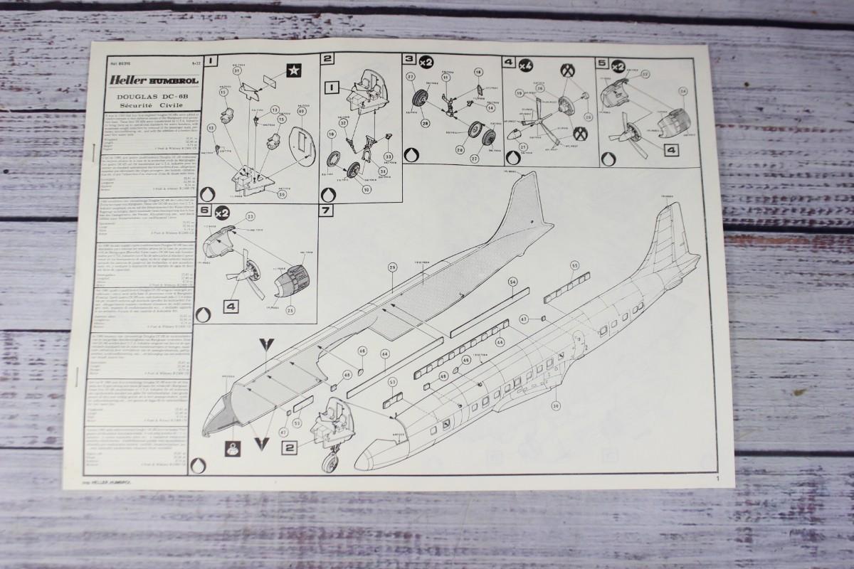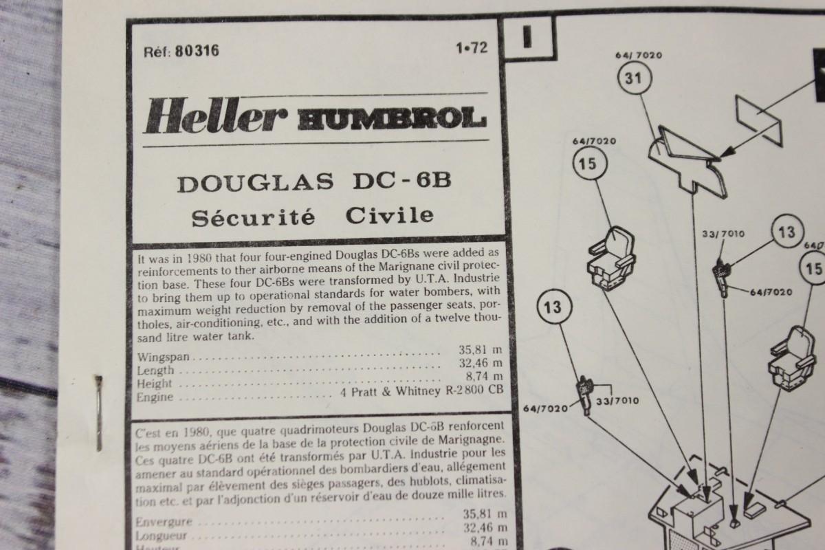 Vintage Heller Humbrol 1.72 Douglas DC-6B Securite Civile Airplane Model Kit