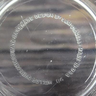 Vintage Heller bakeware by L&M Vignelli, there is no significant scratches or chipping to the glass and is in good condition. The bottom of the dish reads - "20 Heller Oven/Microwave Bakeware Design By L&M Made In USA"