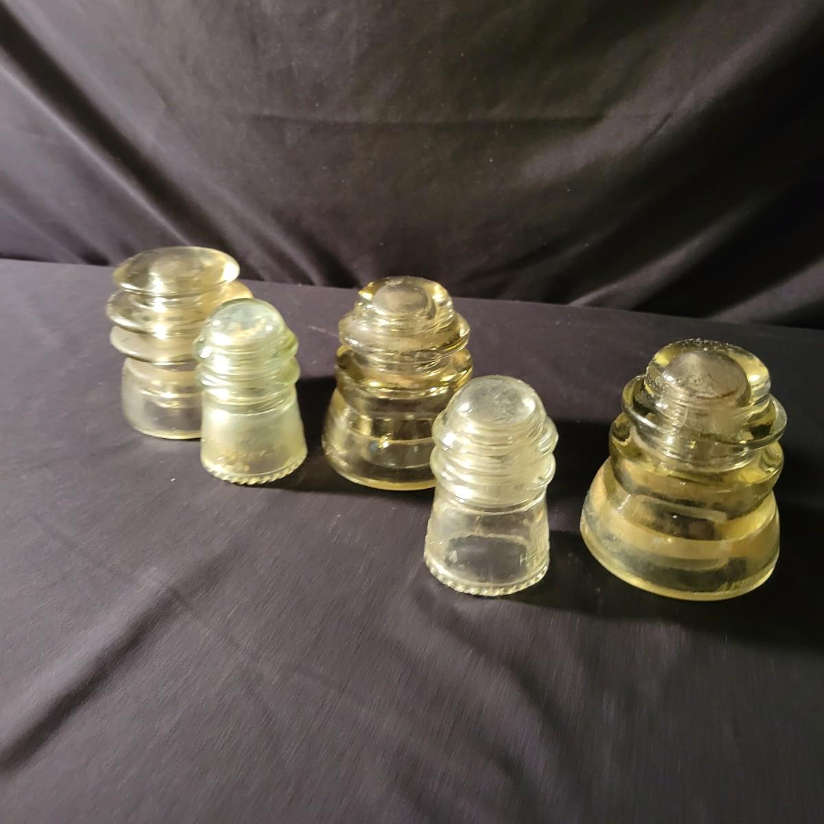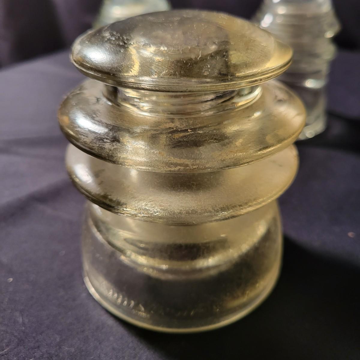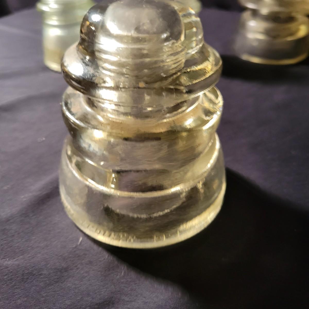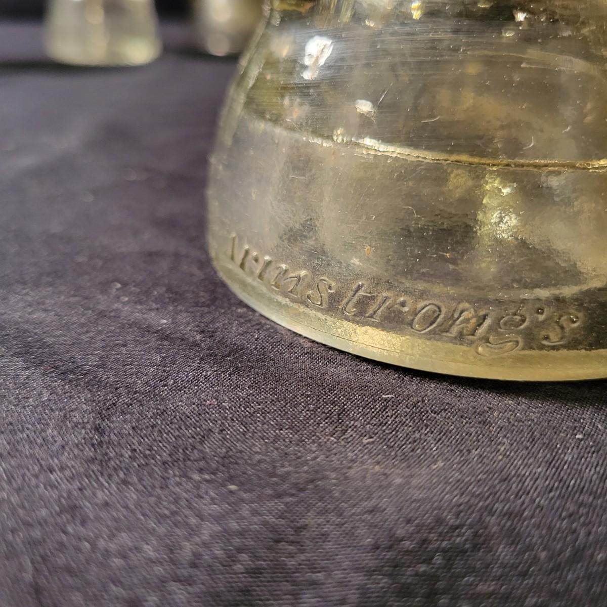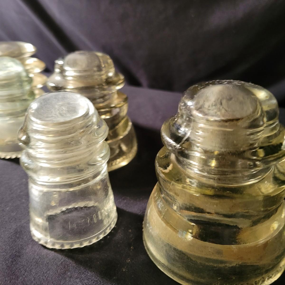 A set of vintage glass insulators manufactured by Hemingray and Armstrong. All are in good condition. The largest insulator measures approximately 3.5" x 4" Shipping available