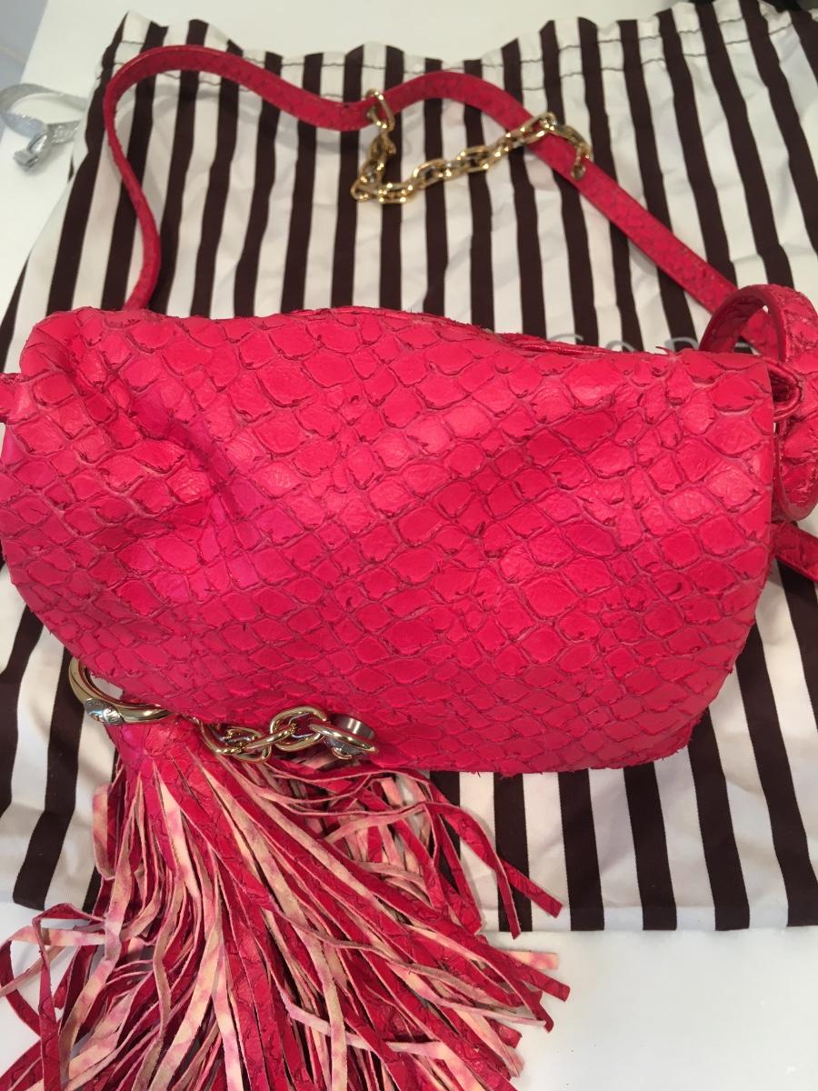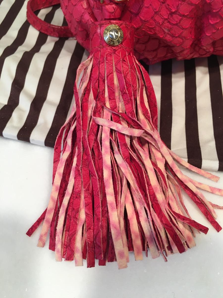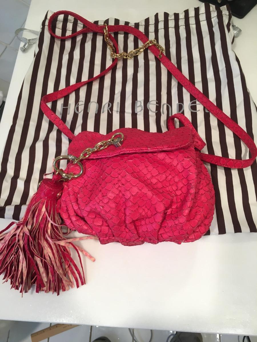Henri Bendel purse with attached large tassel. Chain detail on shoulder strap. Comes with dust bag.