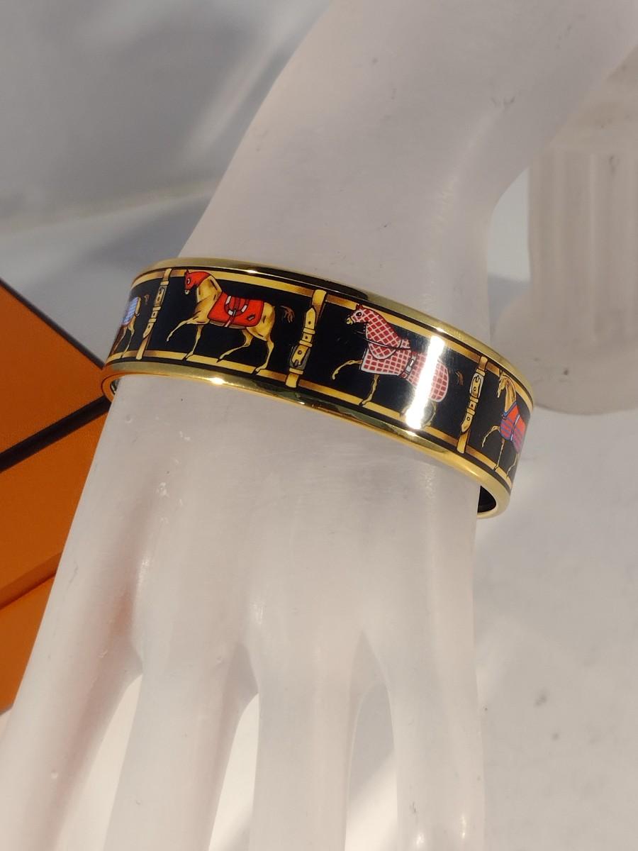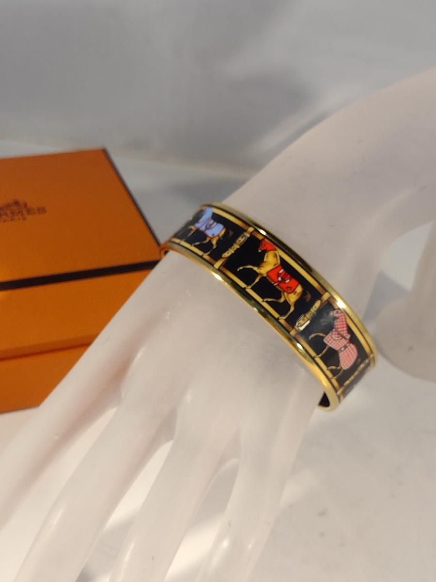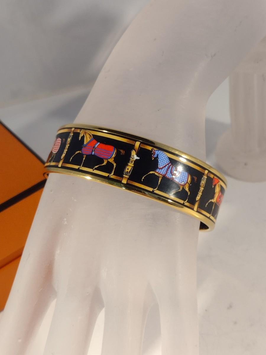 Vintage Hermes Paris, France Wide Band Enamel Horse Theme Bangle with Box (#6)