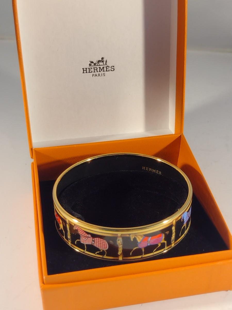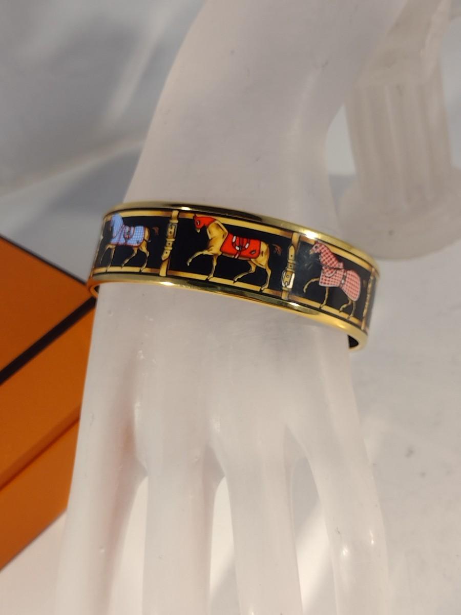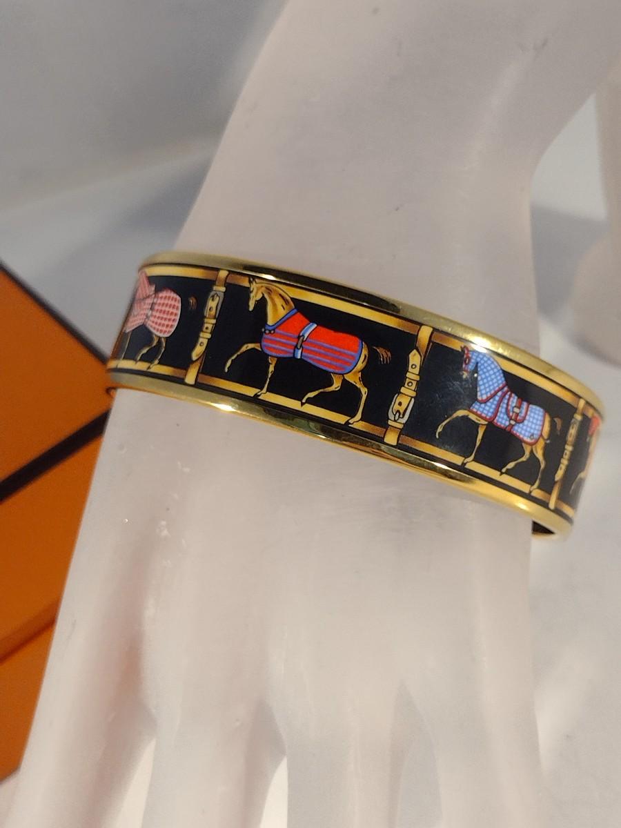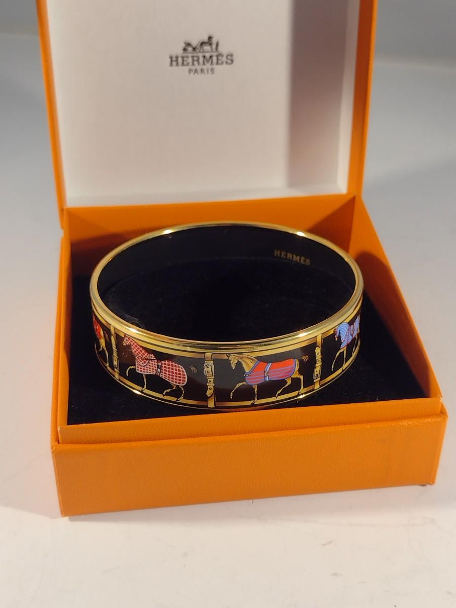 Vintage Hermes Paris, France Wide Band Enamel Horse Theme Bangle with Box (#6)