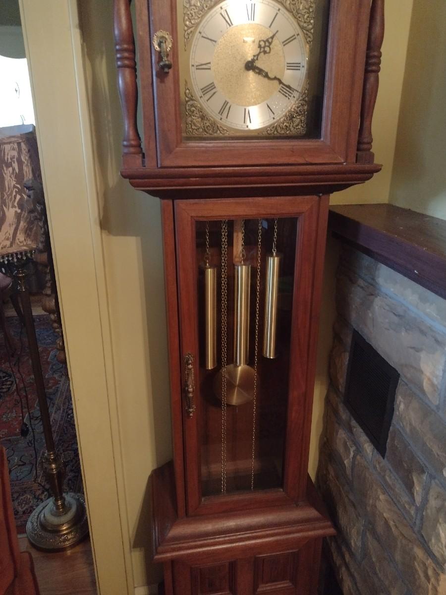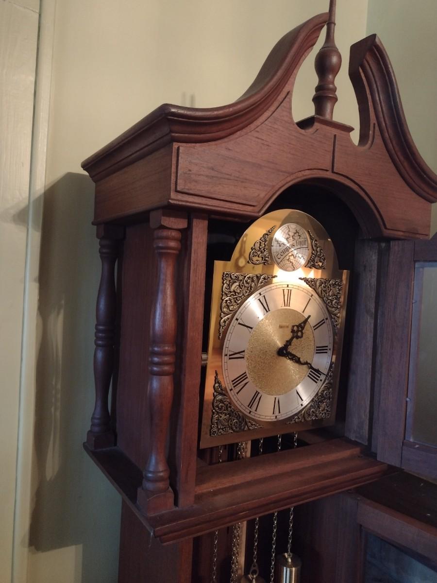Vintage Hermle Wood Case Grandfather Clock Weight Driven with Pendulum