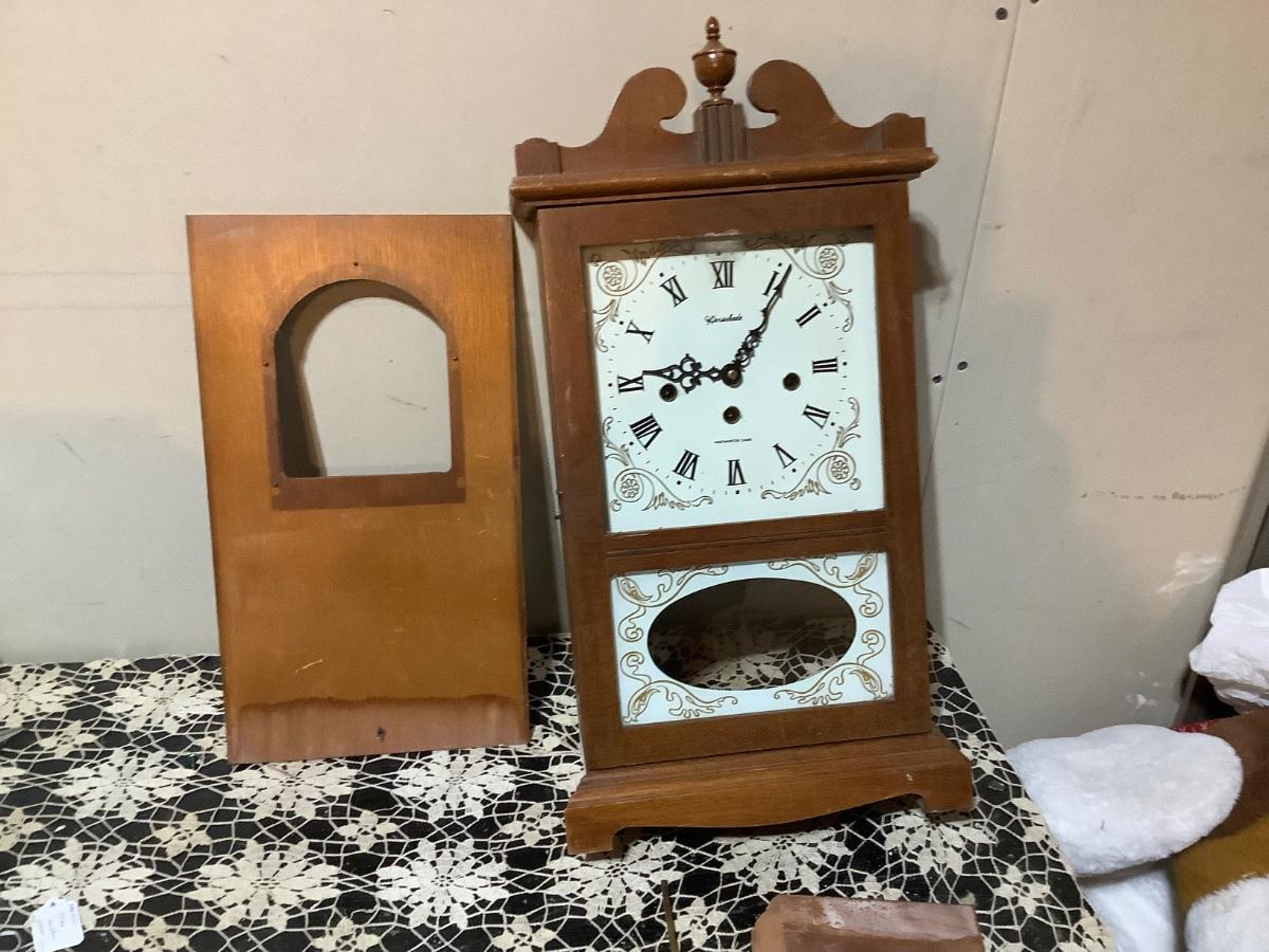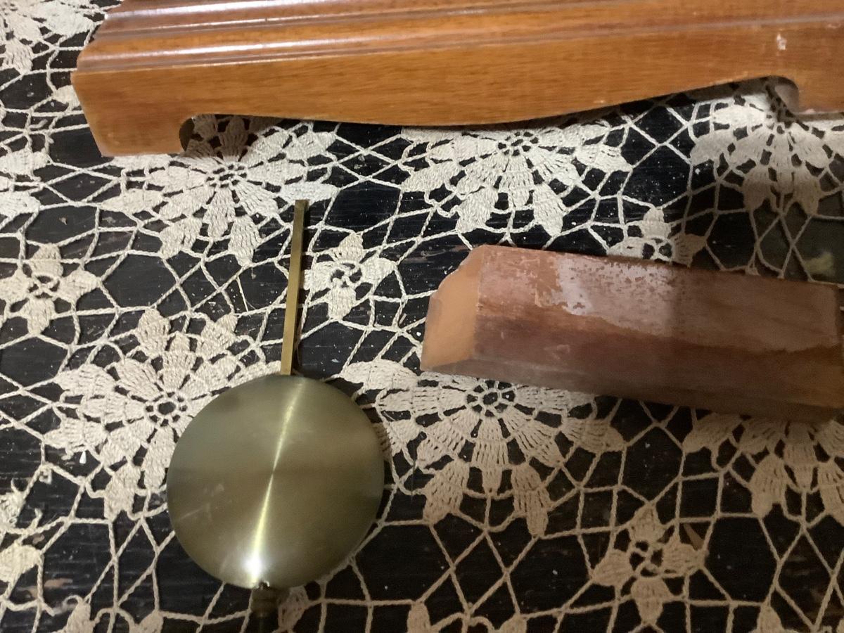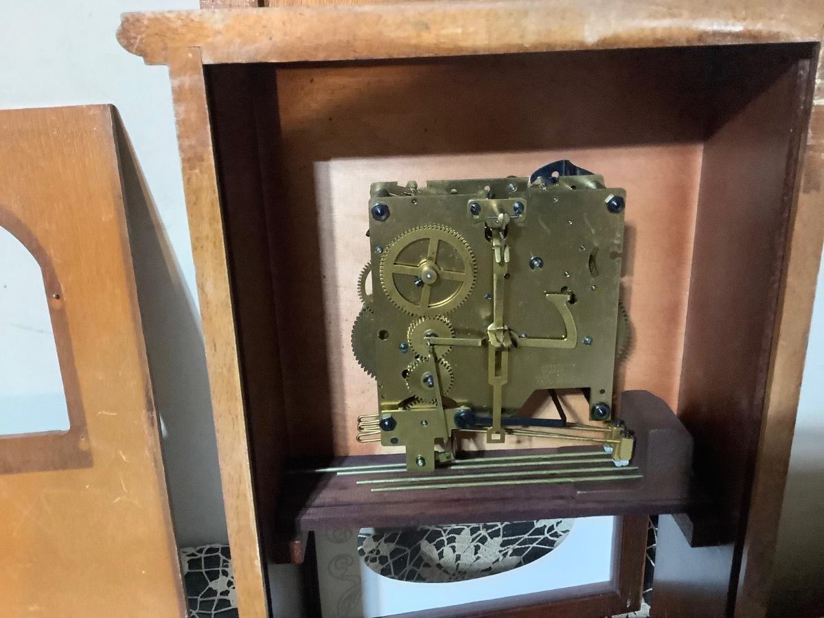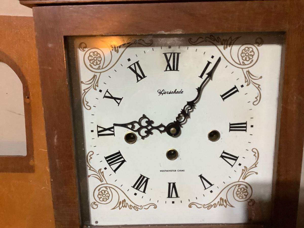 Herschede Westminster chime wall clock. Back is off and one foot is off. No key but it works.