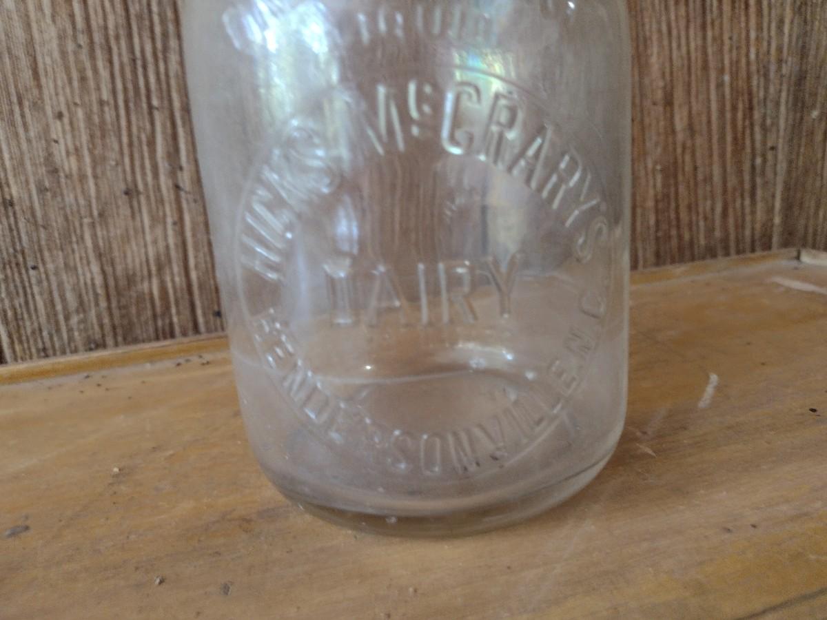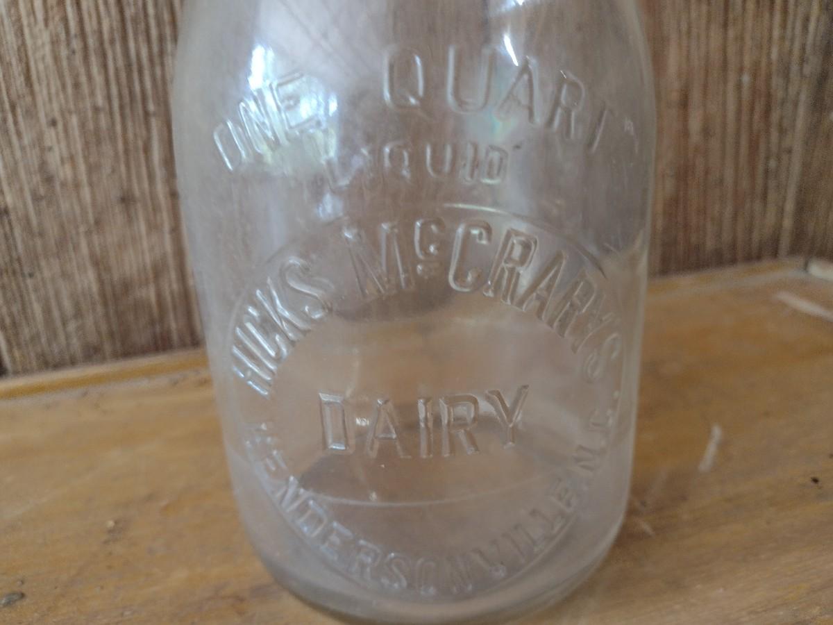 Vintage Hicks McCrary's Dairy Hendersonville, NC Quart Sized Glass Ring Neck Milk Bottle (#11)