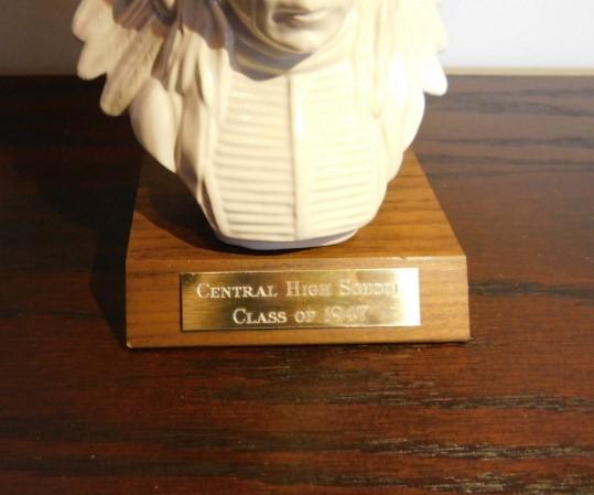 Vintage High School Senior Year 1947 Mascot Ceramic Bust on Wood Base 7" in very good condition and very clean.