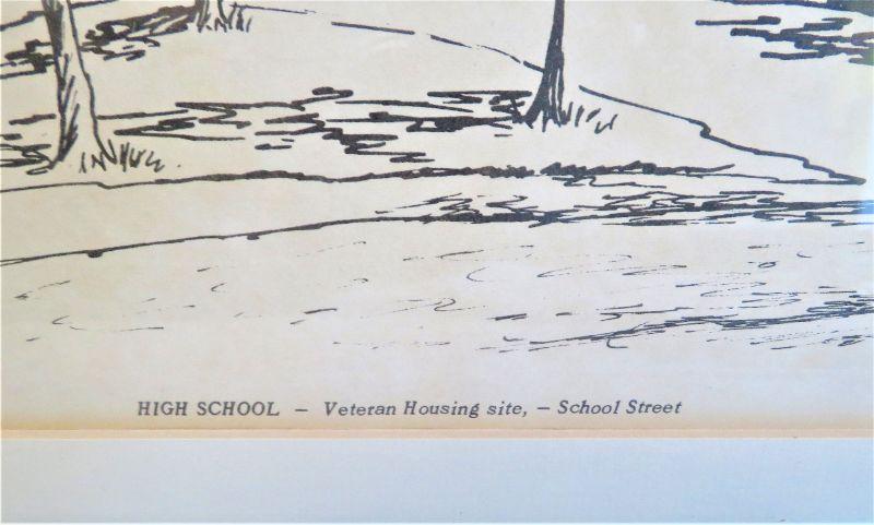 HIGH SCHOOL - Veteran Housing Site School Street signed Shirley Warren Framed ART Vintage