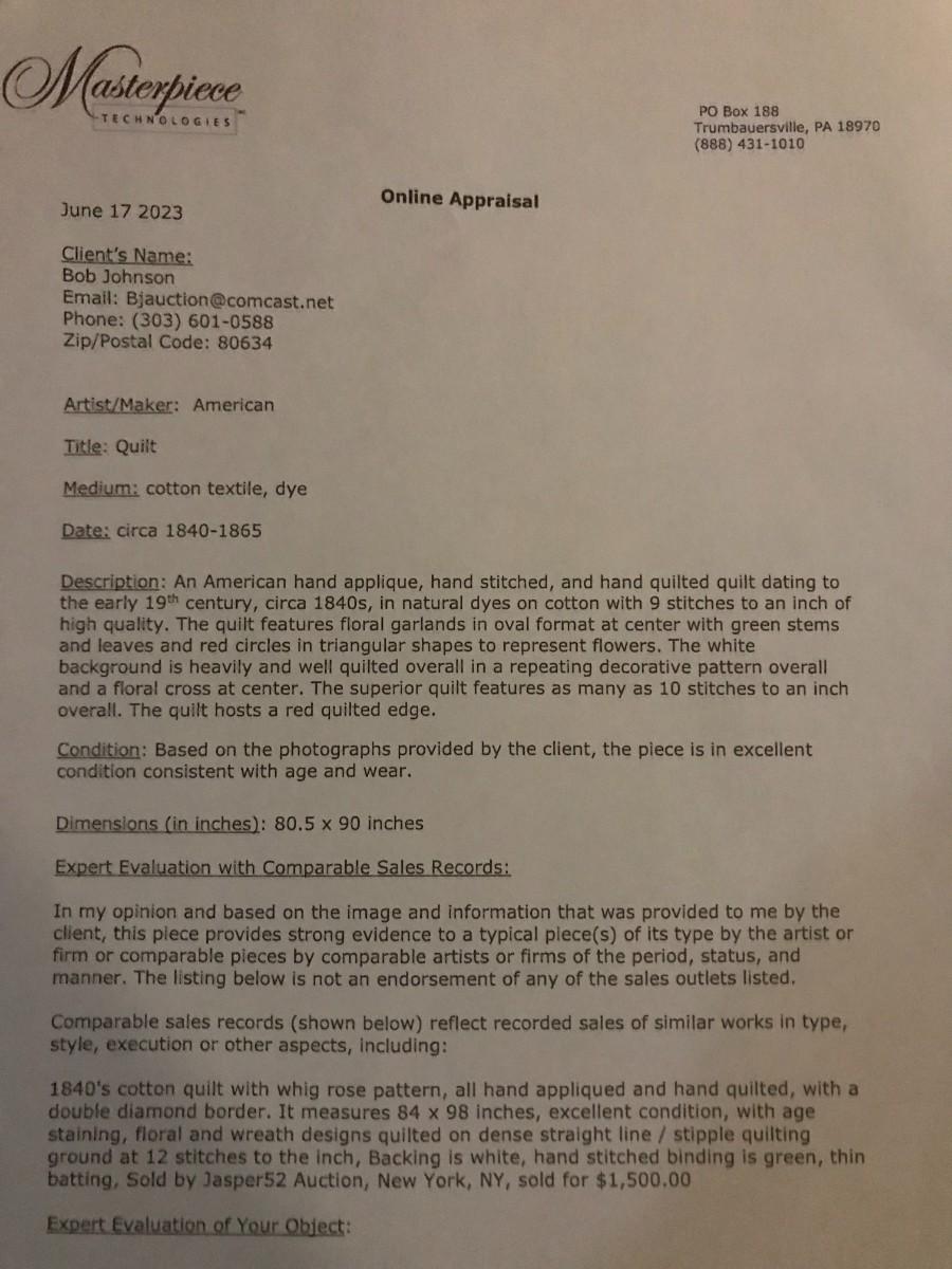 Dating to early 19th century. Superior quality. Excellent condition. Has been in the Longmont museum several years. 80.5 x 90. See museum record and June 17, 2023 appraisal in photo section.