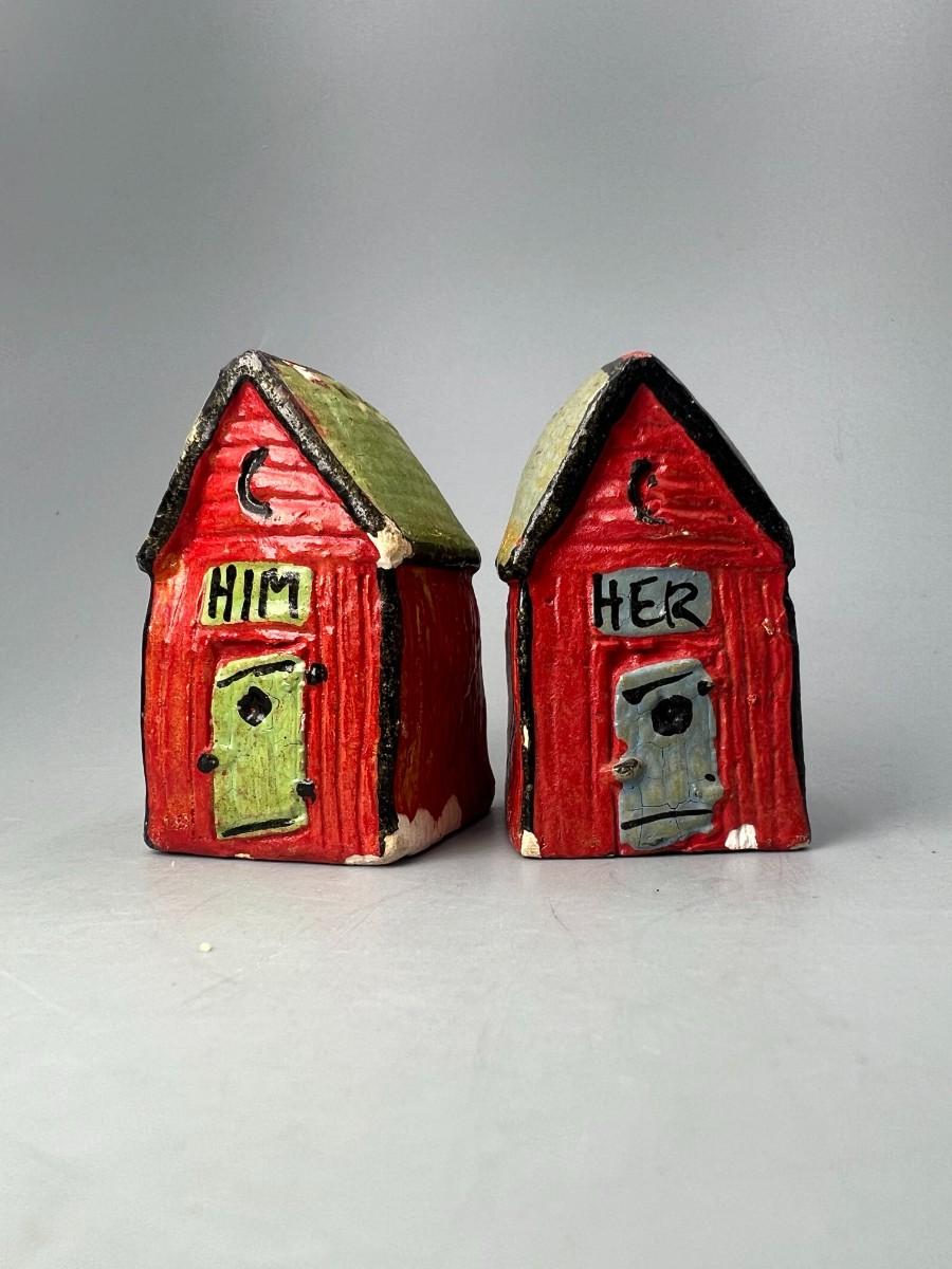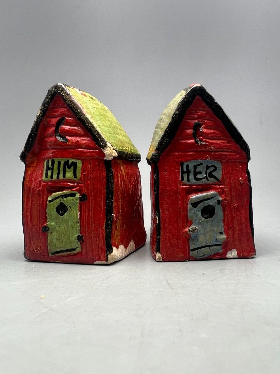 Vintage Him & Her Rustic Country Outhouse Salt & Pepper Shakers
