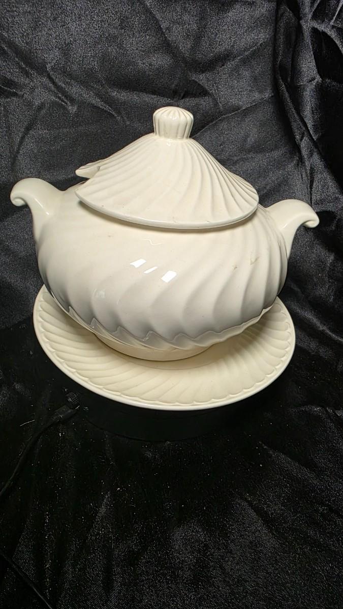 Vintage Himark Japan White Swirl Ceramic Soup Tureen with Lid & Underplate