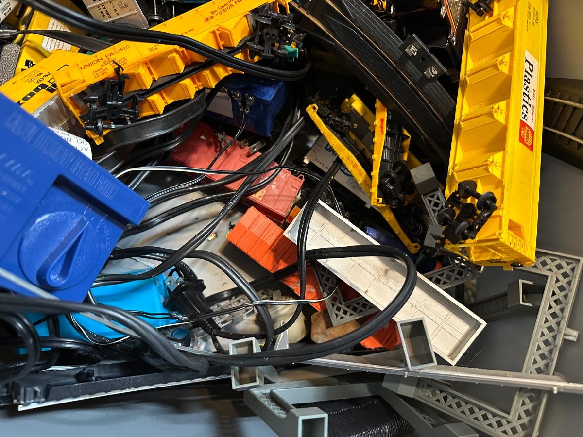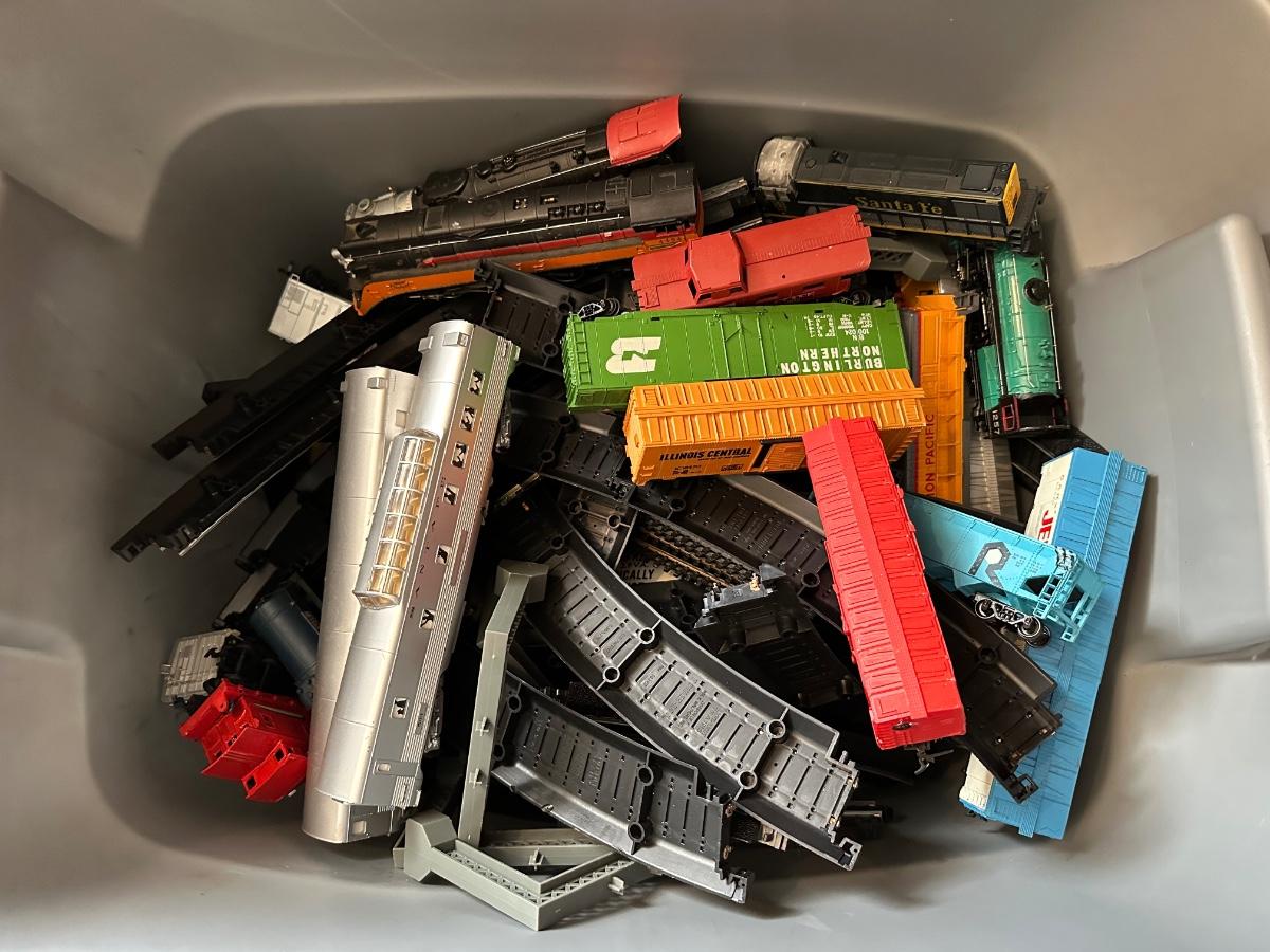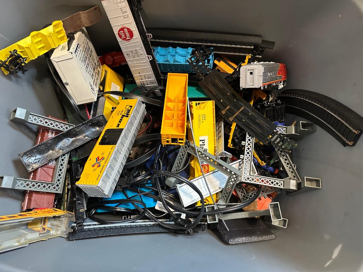 Items show normal play wear from age; some pieces may need cleaning, tuning, or minor repair. Sold as a lot, exactly as shown—great starter set, parts lot, or for an HO hobbyist.