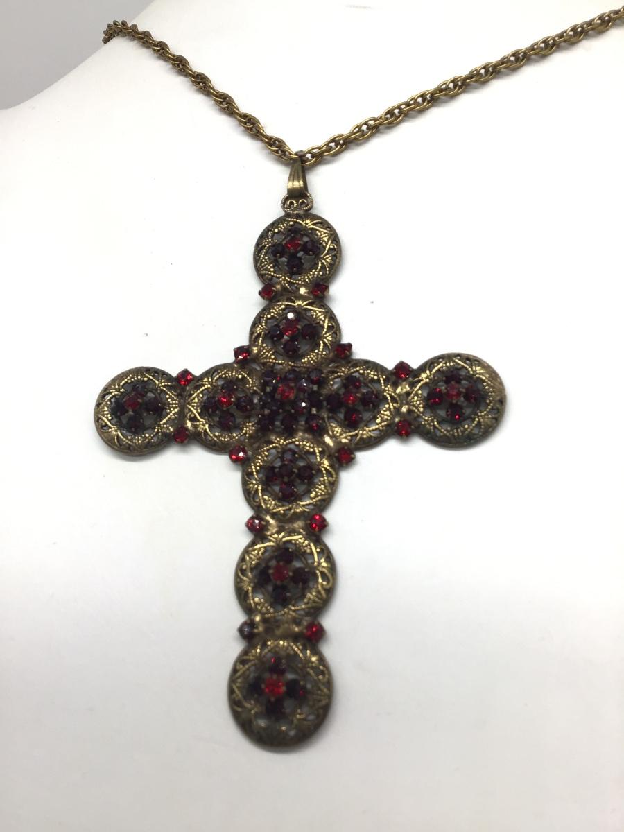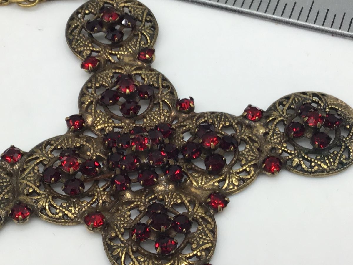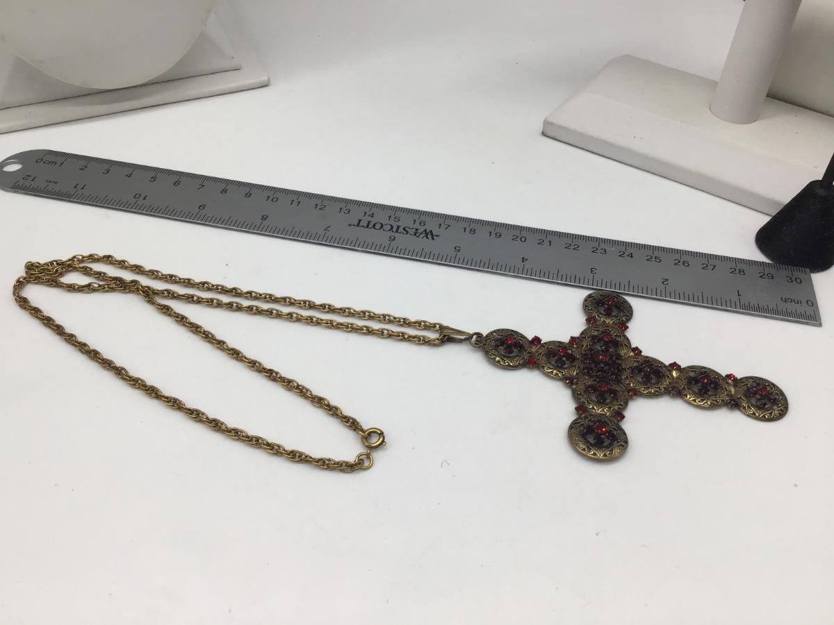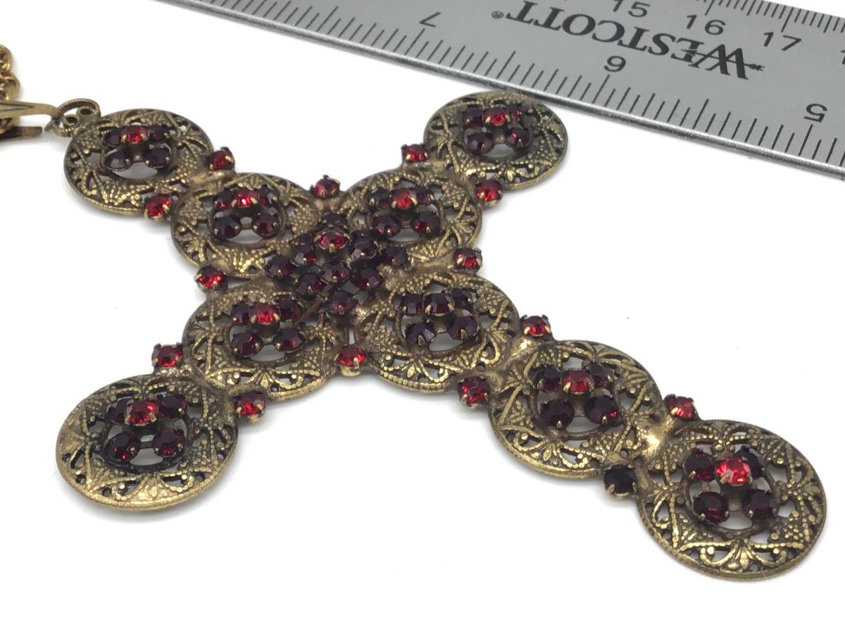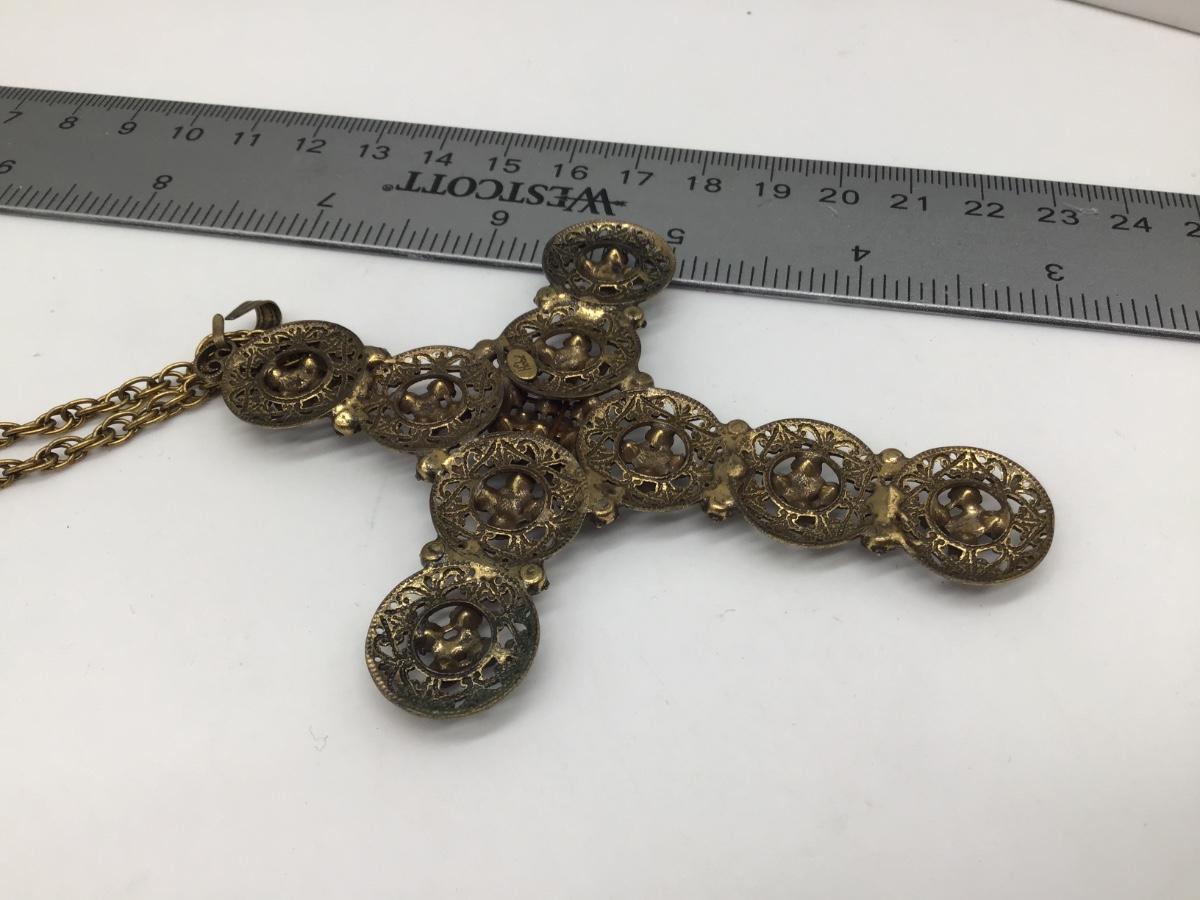 Vintage Large Hobe Cross Large Pendant With Rhinestones and Chain Marked. ˜Š