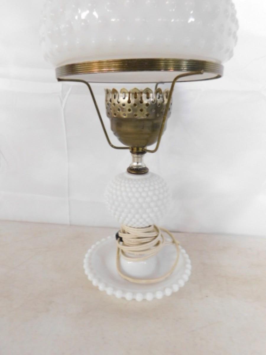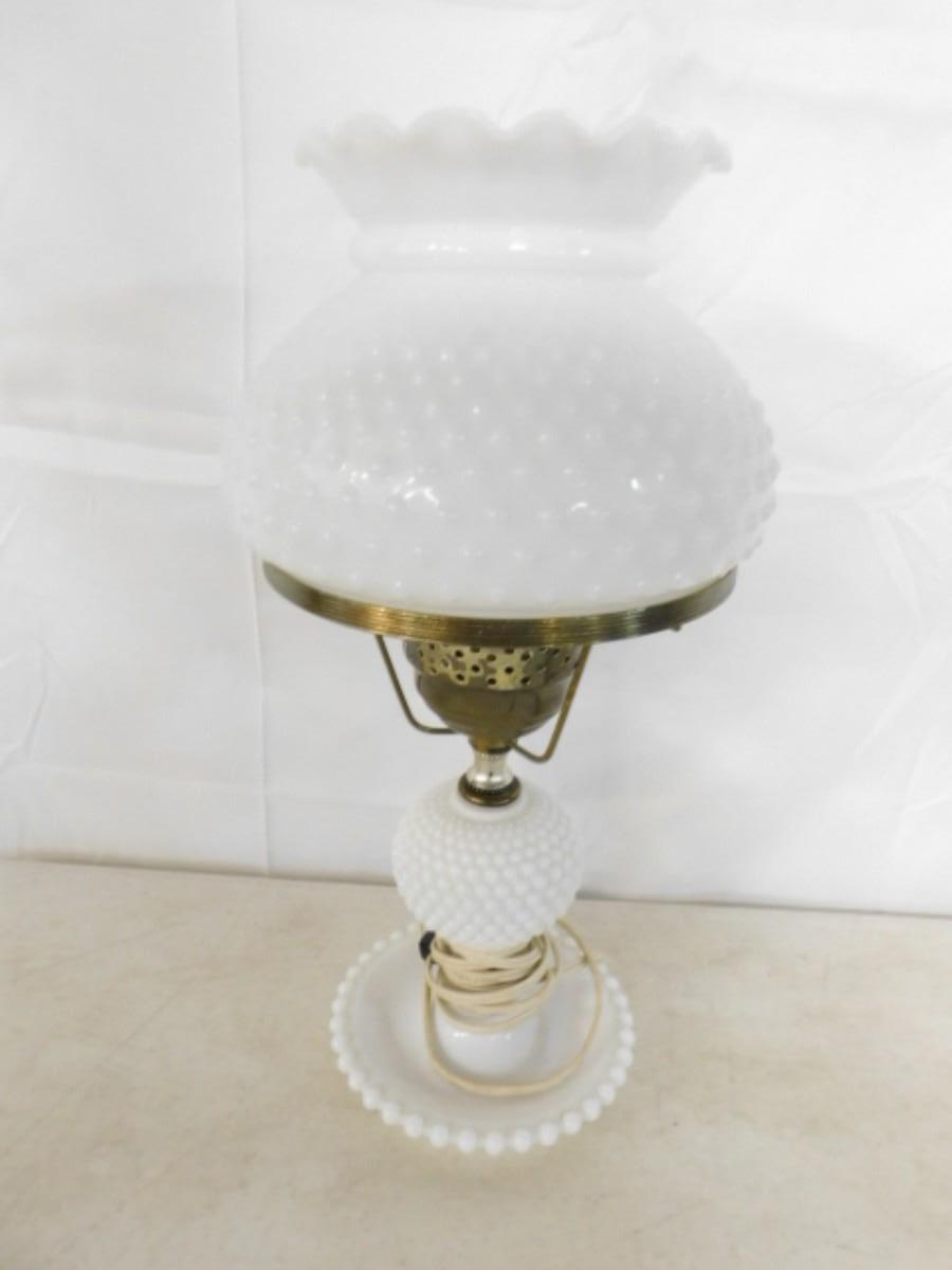 Vintage Hobnail Electric Lamp with Milk Glass Shade