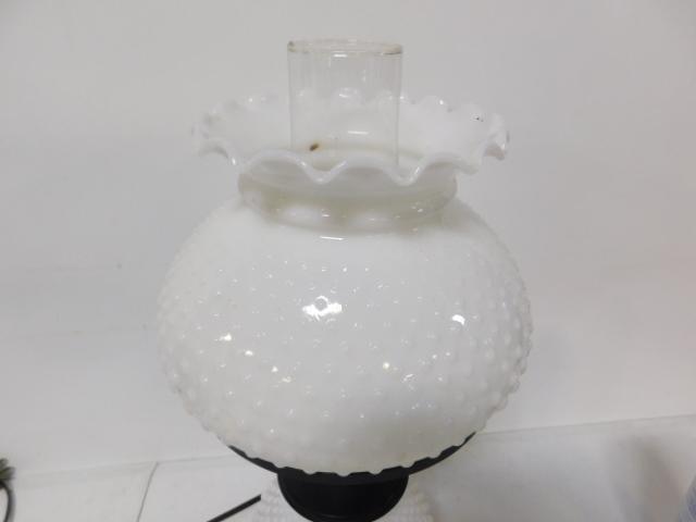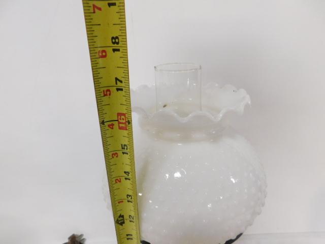 Vintage Hobnail Milk Glass Hurricane Lamp two hobnails have popped on back side of lamp as shown