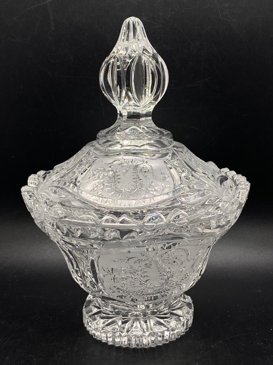 Vintage Hofbauer Dragon Design Lidded Crystal Candy Dish