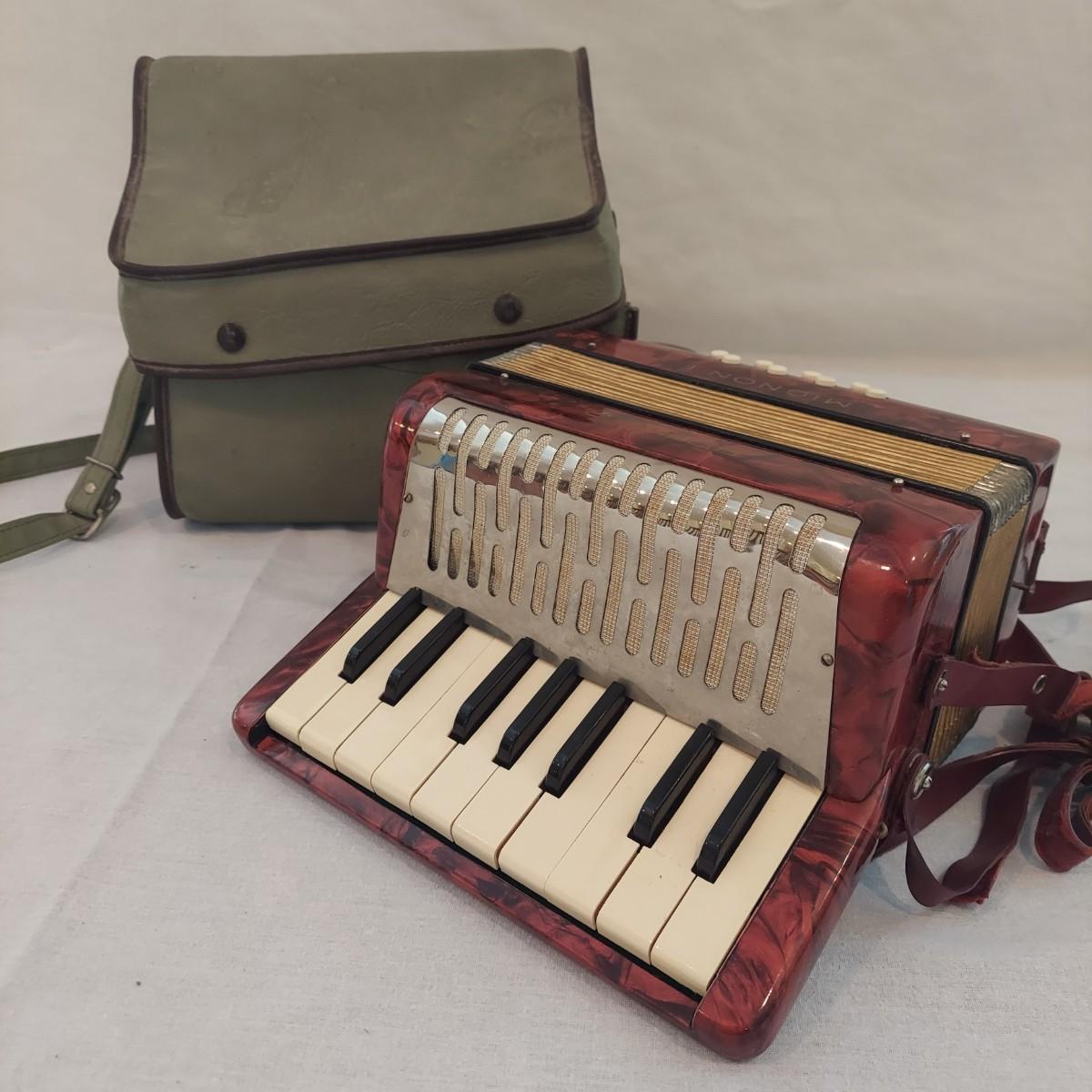 Small vintage accordion in case. The Mignon I, made by Hohner. Measures approximately 8" x 9" x 5"H. Some wear on the straps. Instrument plays at time of upload. Shipping available. Shipping can be costly. We suggest contacting our preferred local shipping provider, Postage Express, with dimensions and getting an estimate before bidding: (828) 670-5501or postageexpress@yahoo.com.