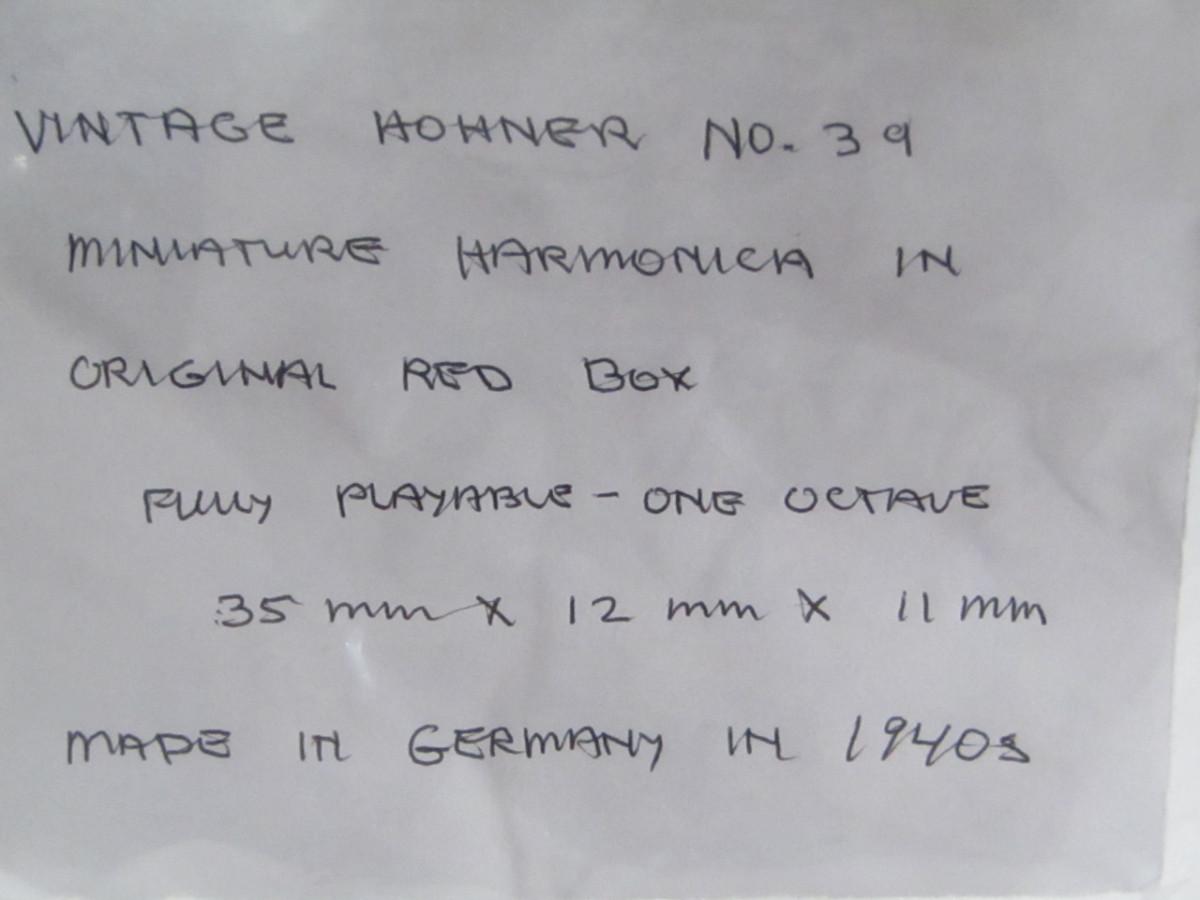 Vintage Hohner No.39 Mini Harmonica with Paper Box (#4)