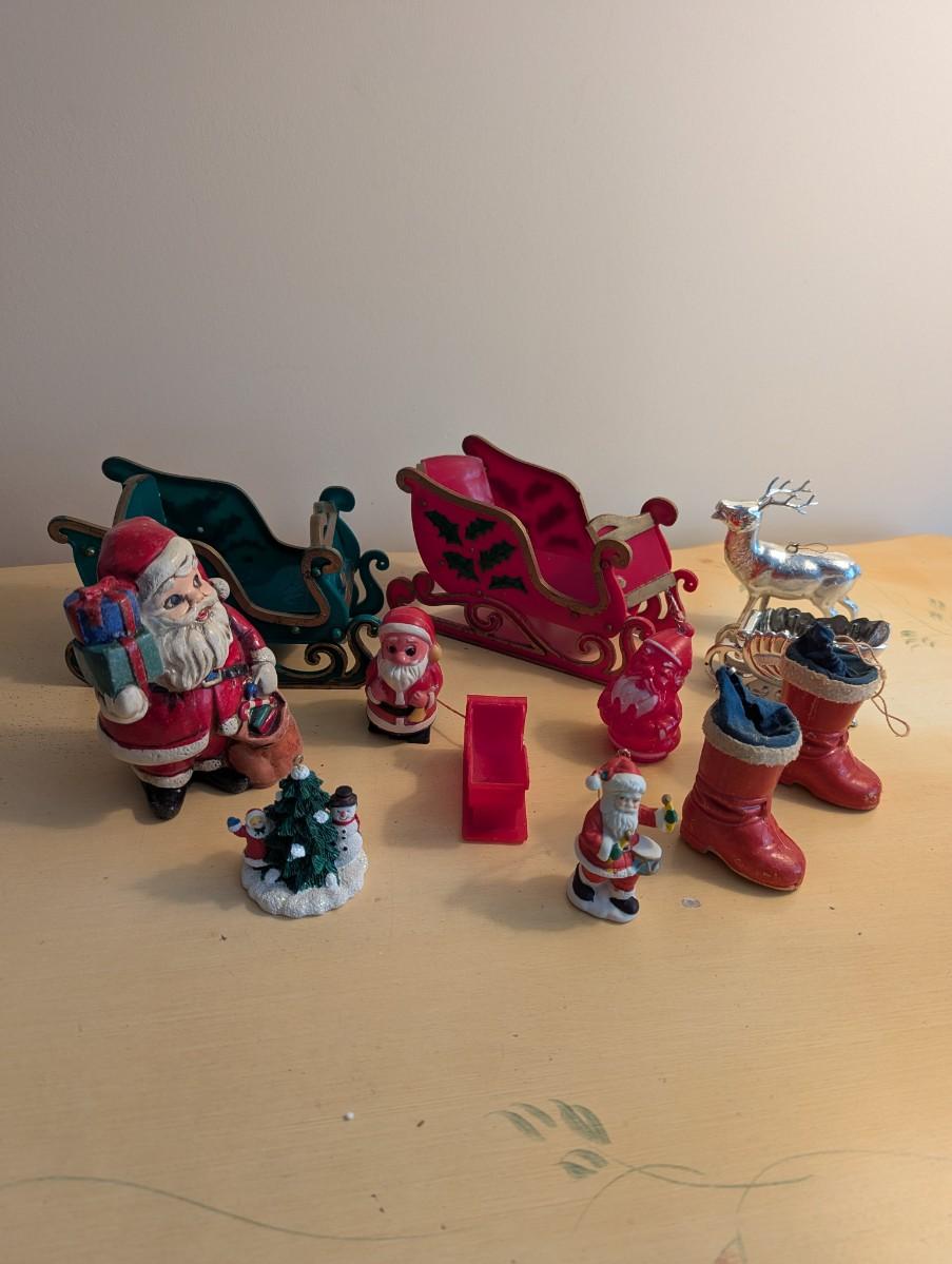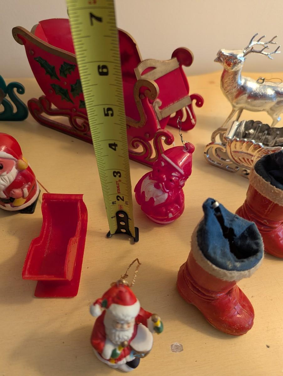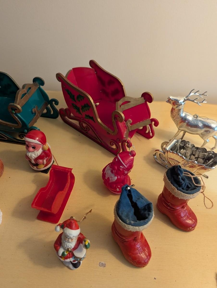Vintage Holiday Decorations Folding Sleighs Plastic Boots Lot 1