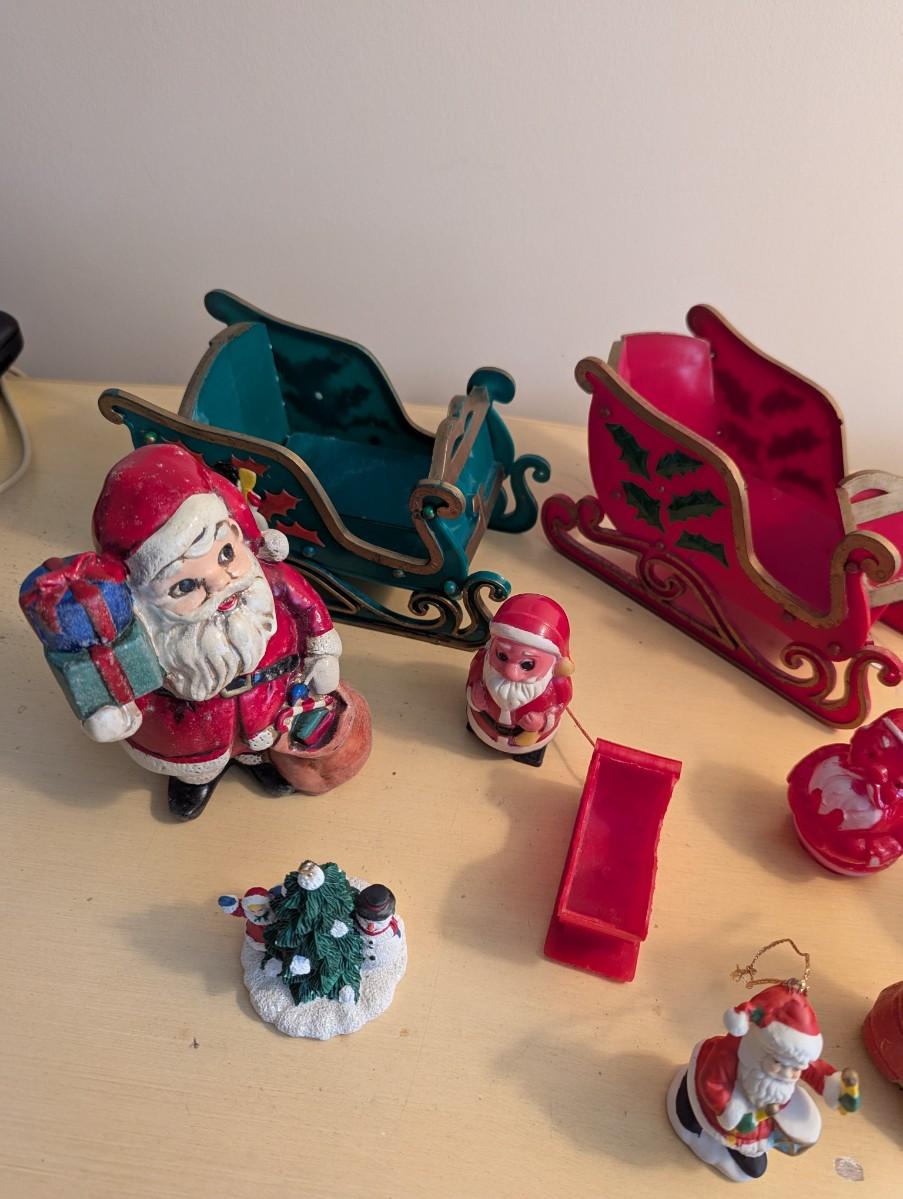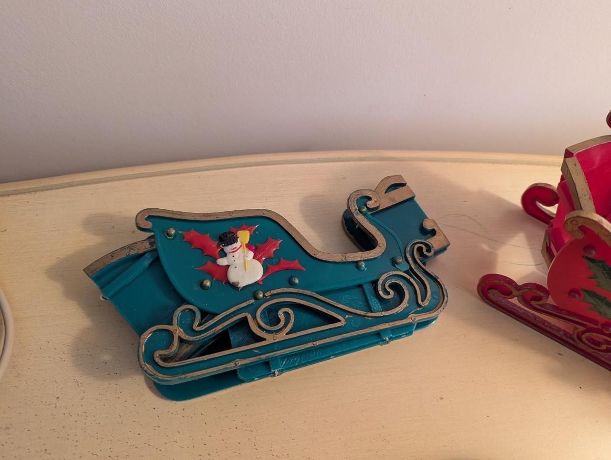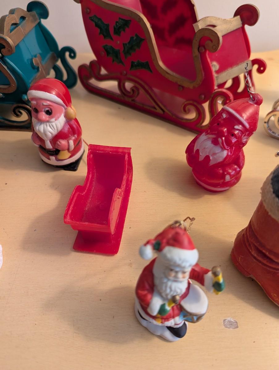 Vintage Holiday Decorations Folding Sleighs Plastic Boots Lot 1