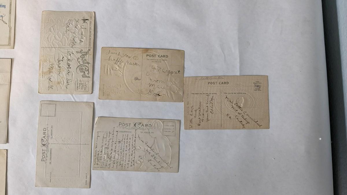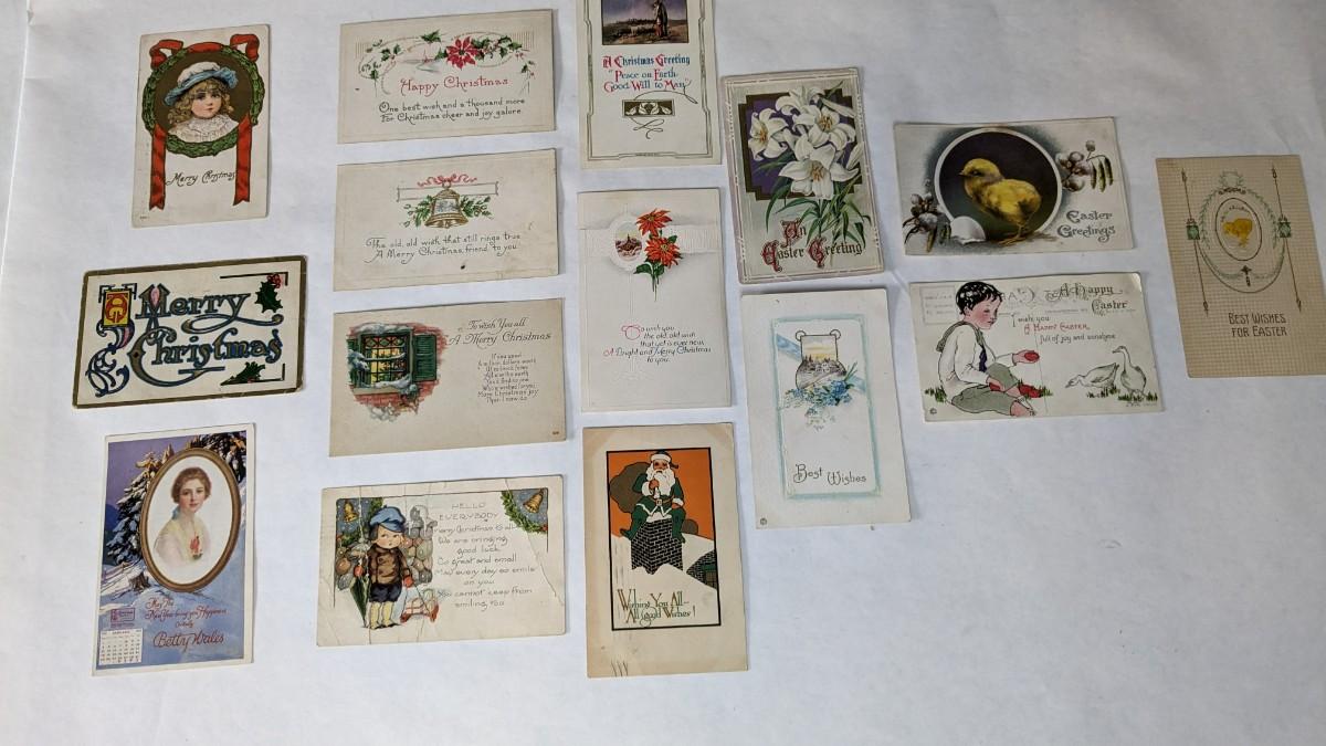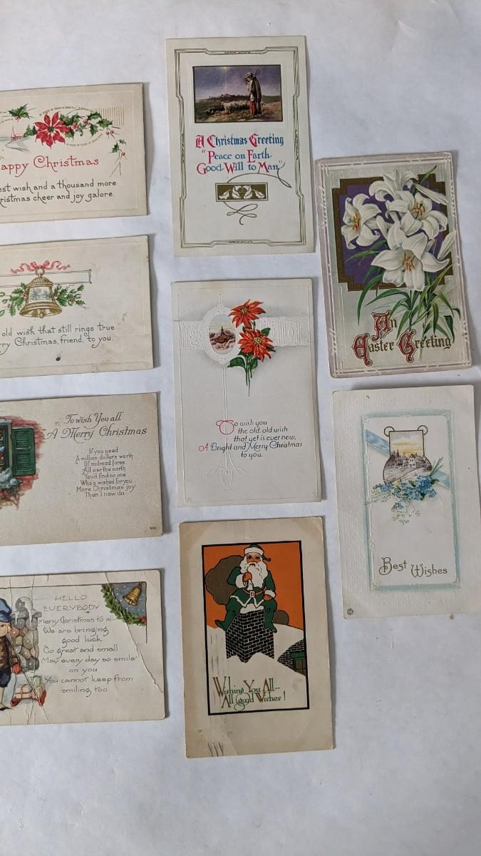 a mix of Christmas and Easter, some very lovely embossed, used and unused, post cards. Note wear in photos, a ton of great upcycle or decorative potential.