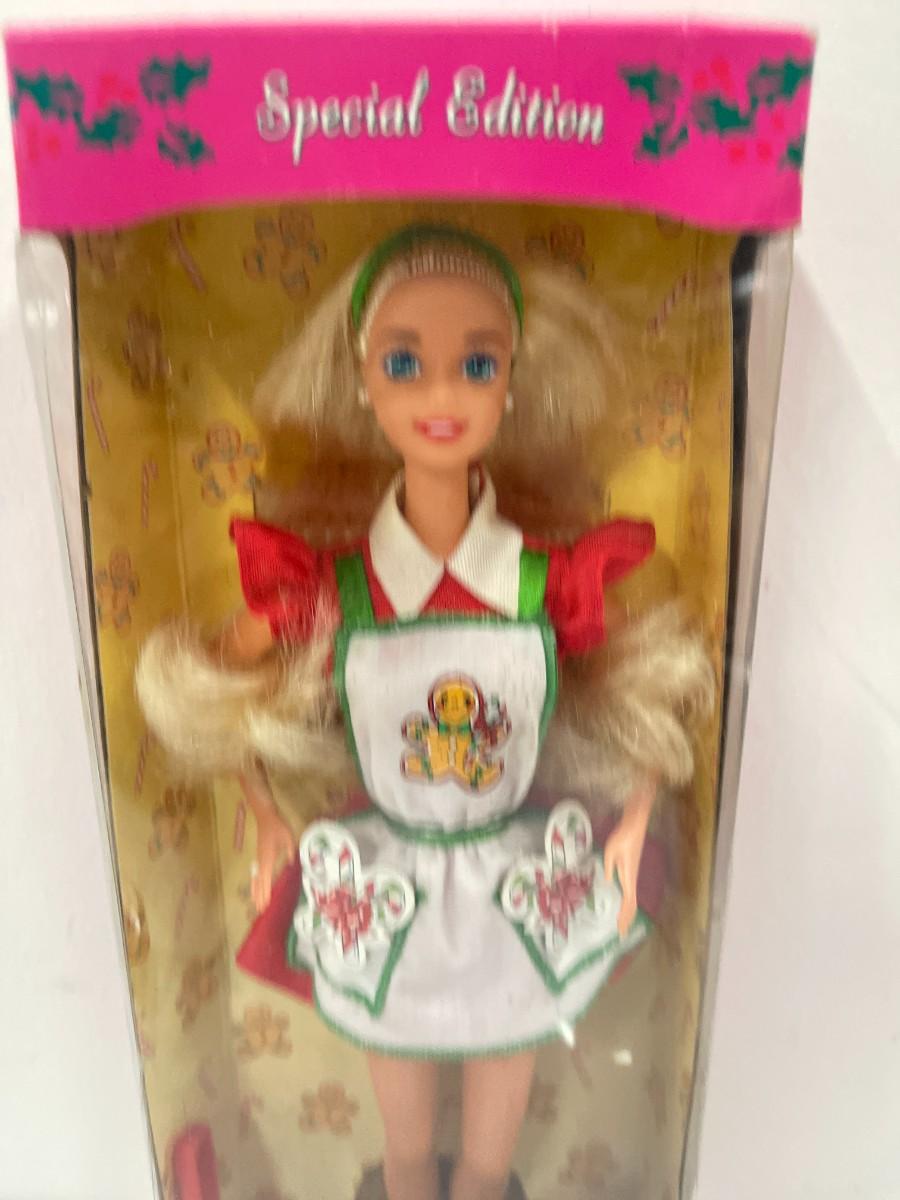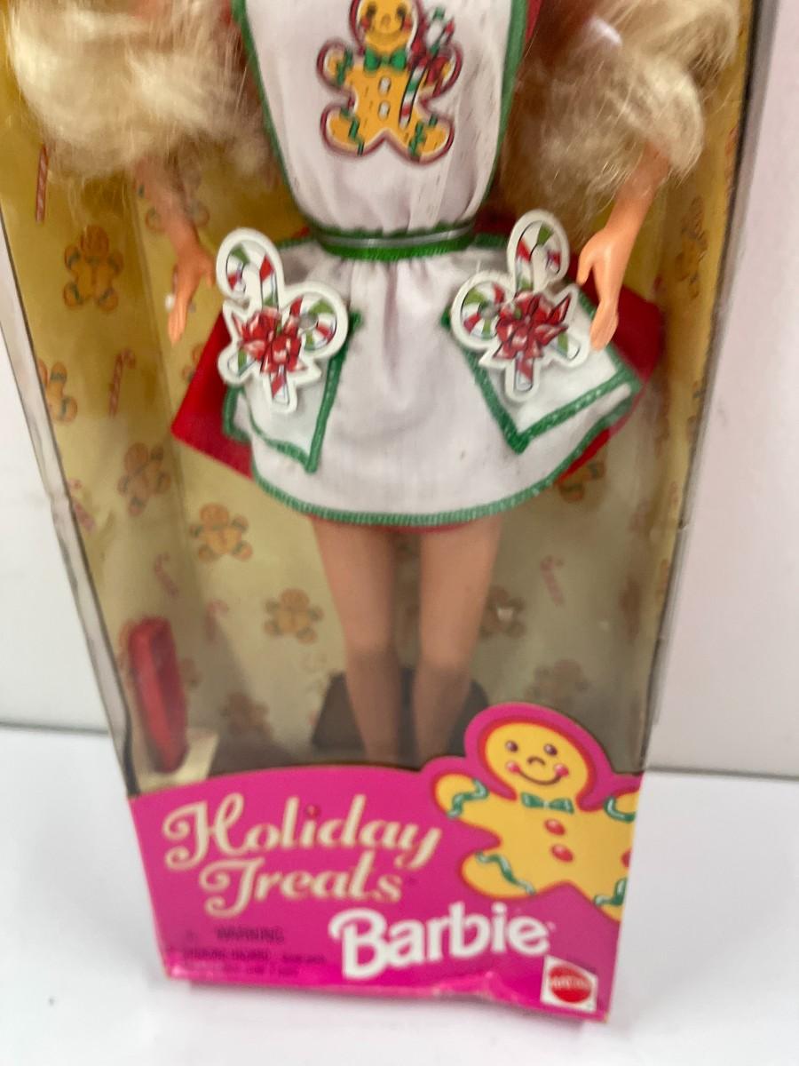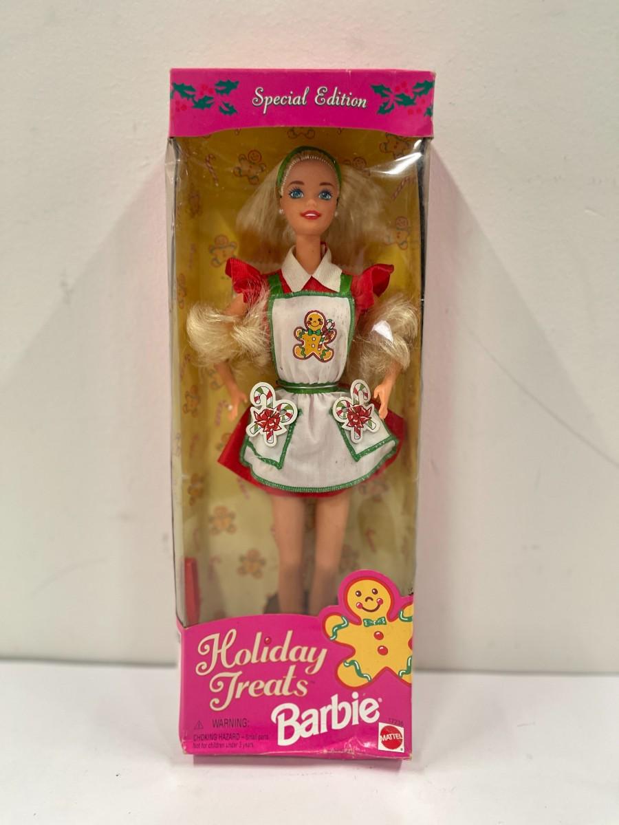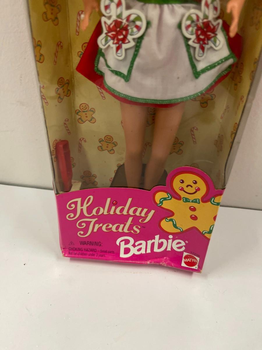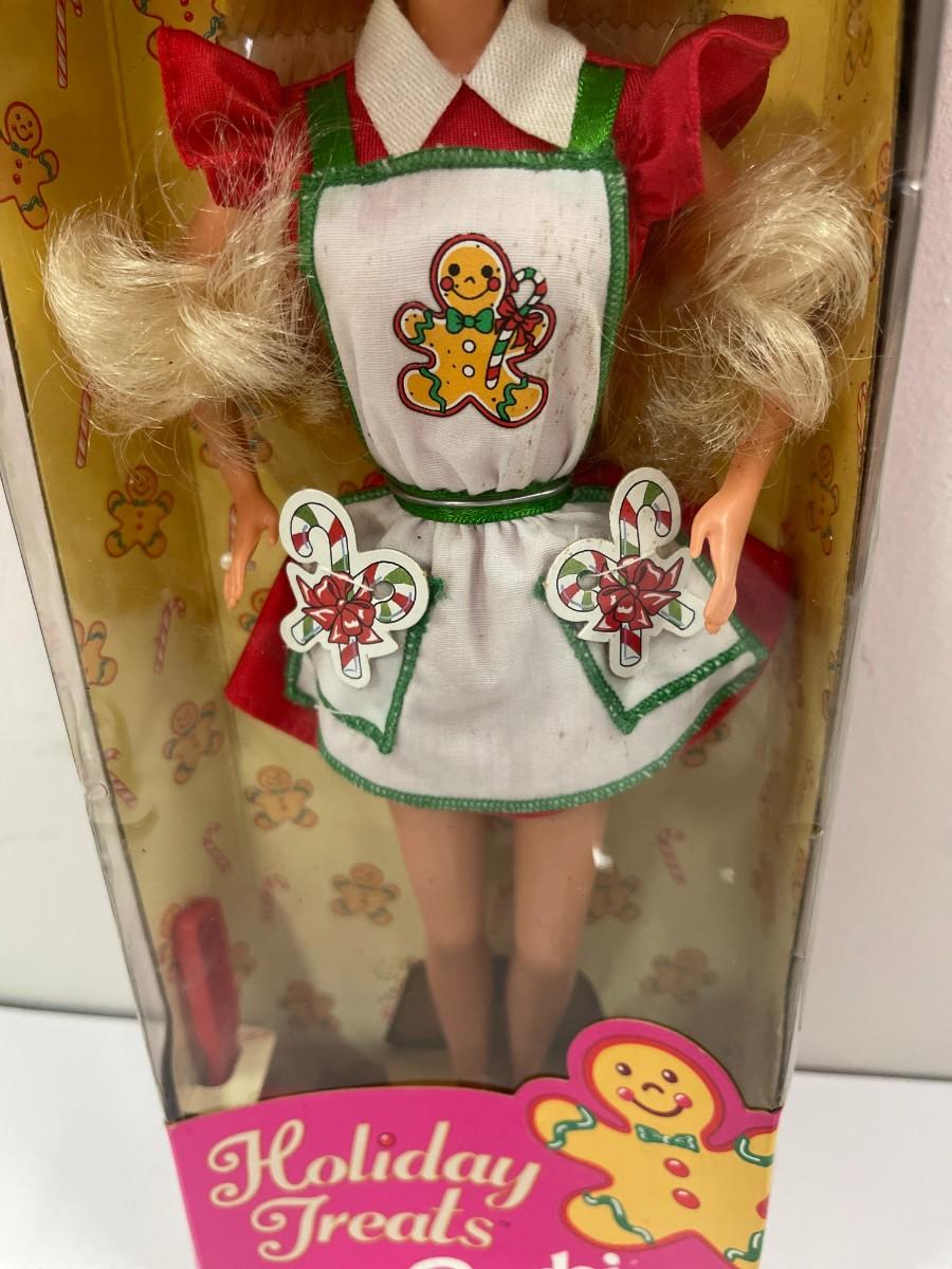 Vintage Holiday Treats Barbie, in original box. Box has been opened but Barbie is still nestled in her packaging. Some staining to the fabric of her apron.