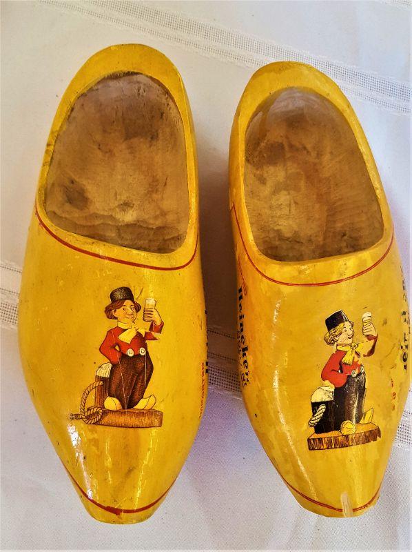 1950's Hand Carved Vintage Holland Heineken Wooden Shoes.
