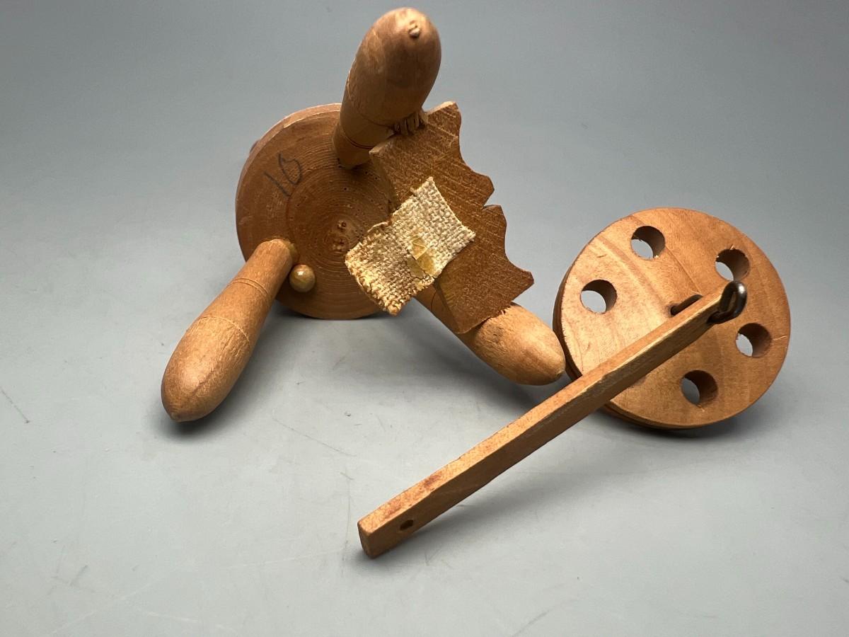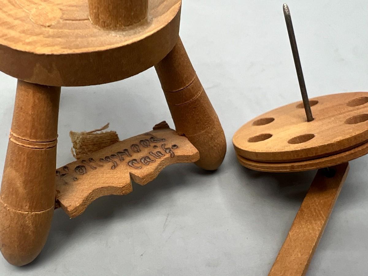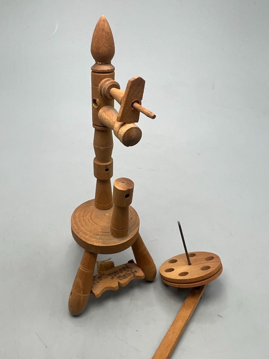 Vintage Hollywood California Vacation Souvenir Wooden Spinning Wheel Miniature. In vintage condition. Under 5" size.