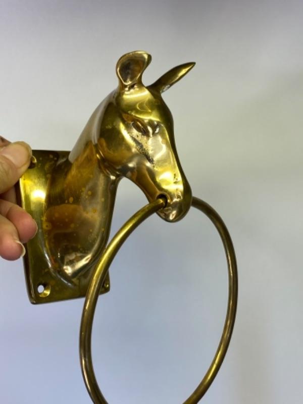 Charming retro brass towel ring w equestrian Horse Head and ring adds charm or glam to your powder room, entry anywhere you need to hang something!