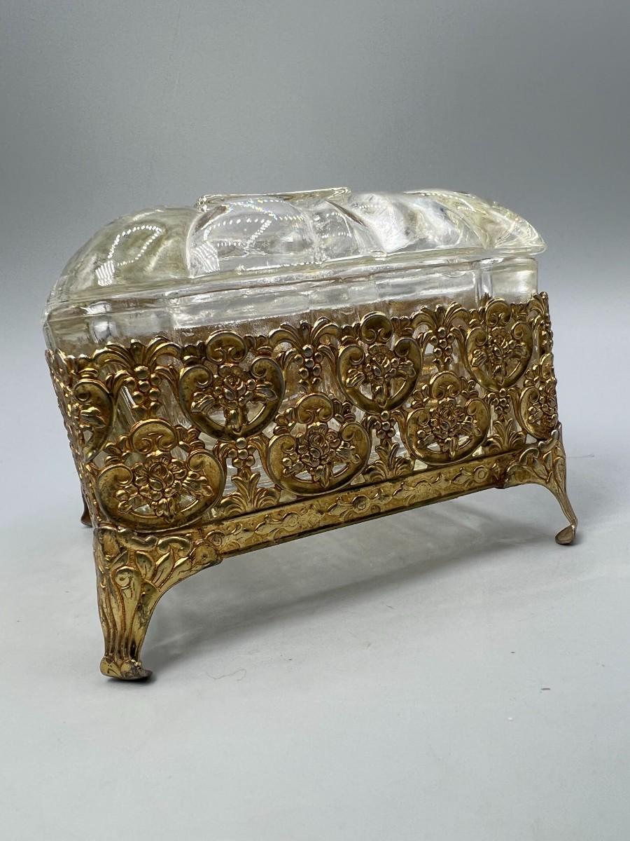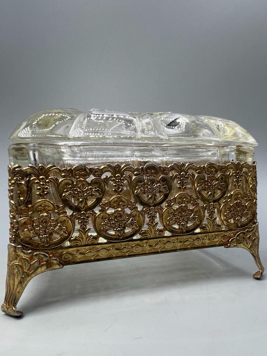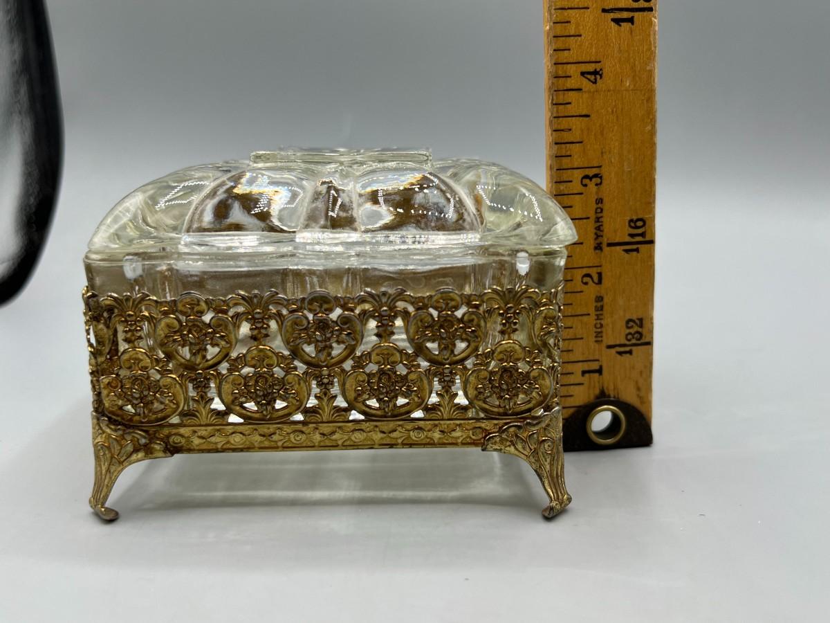 Vintage Hollywood Regency Crystal Jewelry Casket Trinket Box