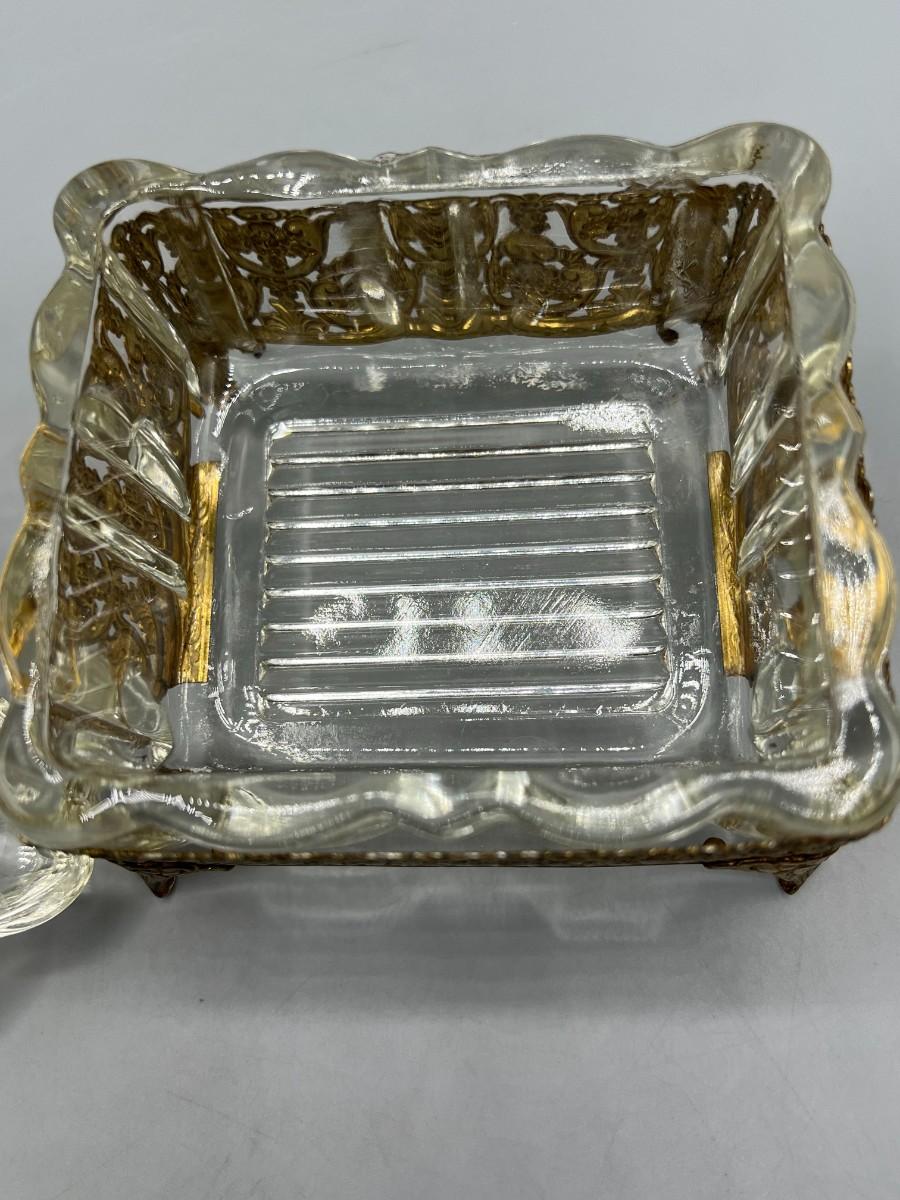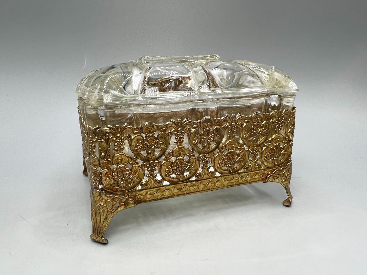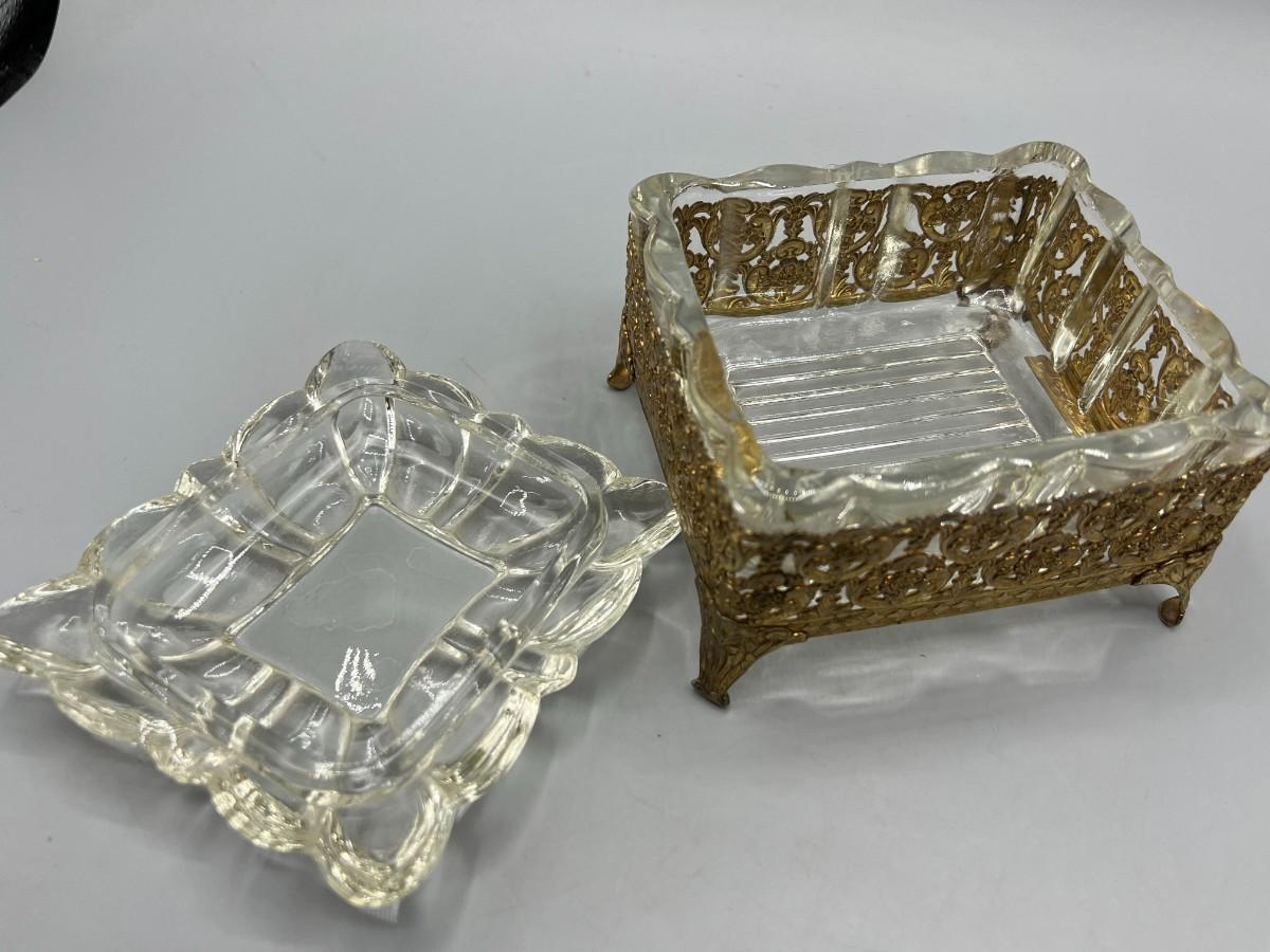 Vintage Hollywood Regency Crystal Jewelry Casket Trinket Box