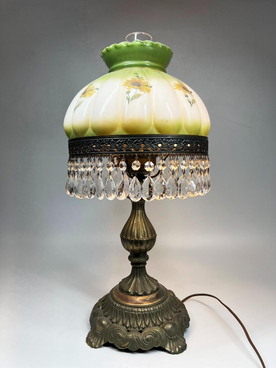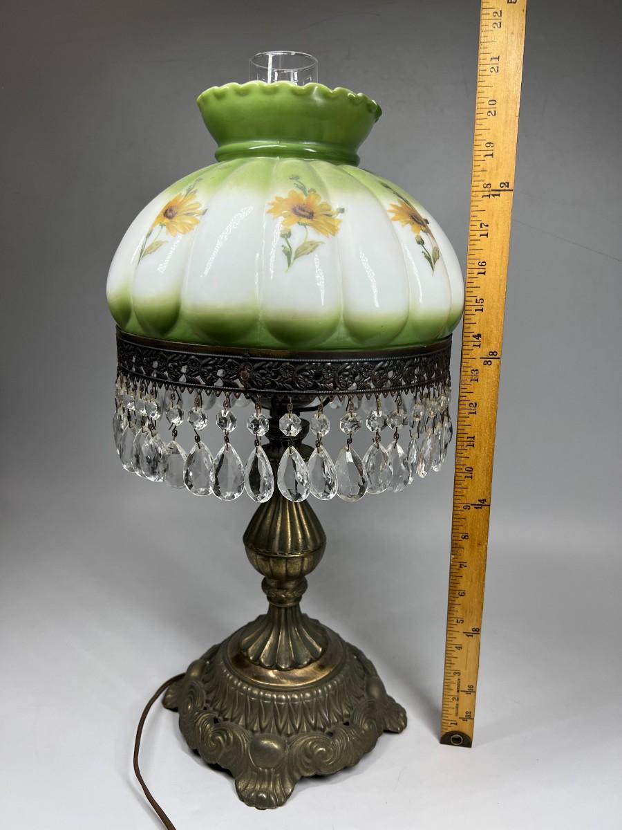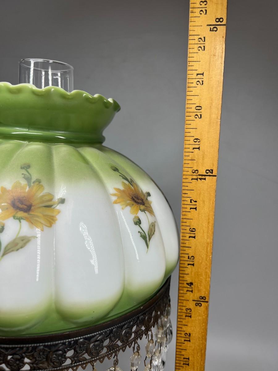 There is no significant damage to the lamp or the glass shades and is in overall good displayable or collectible condition. Has been tested and works perfectly, check pictures for more details and for sizing.