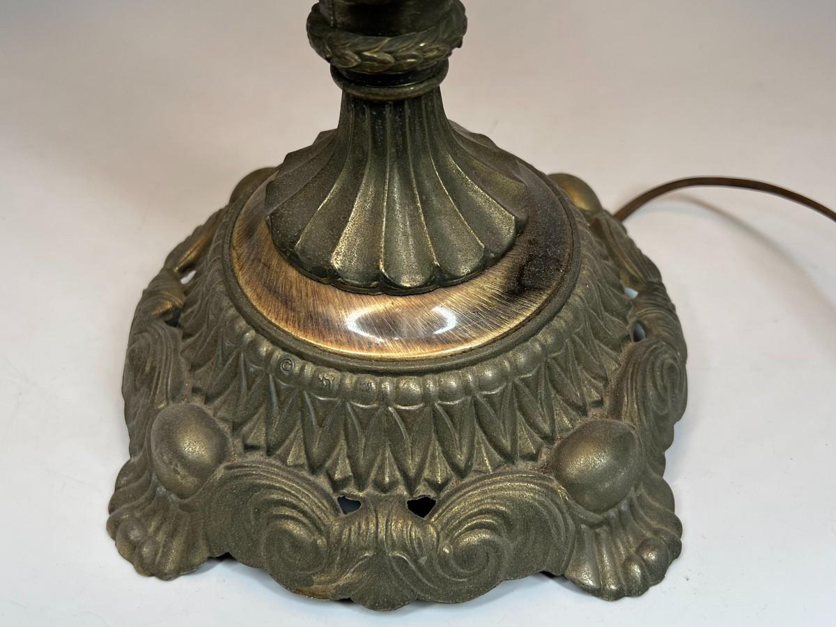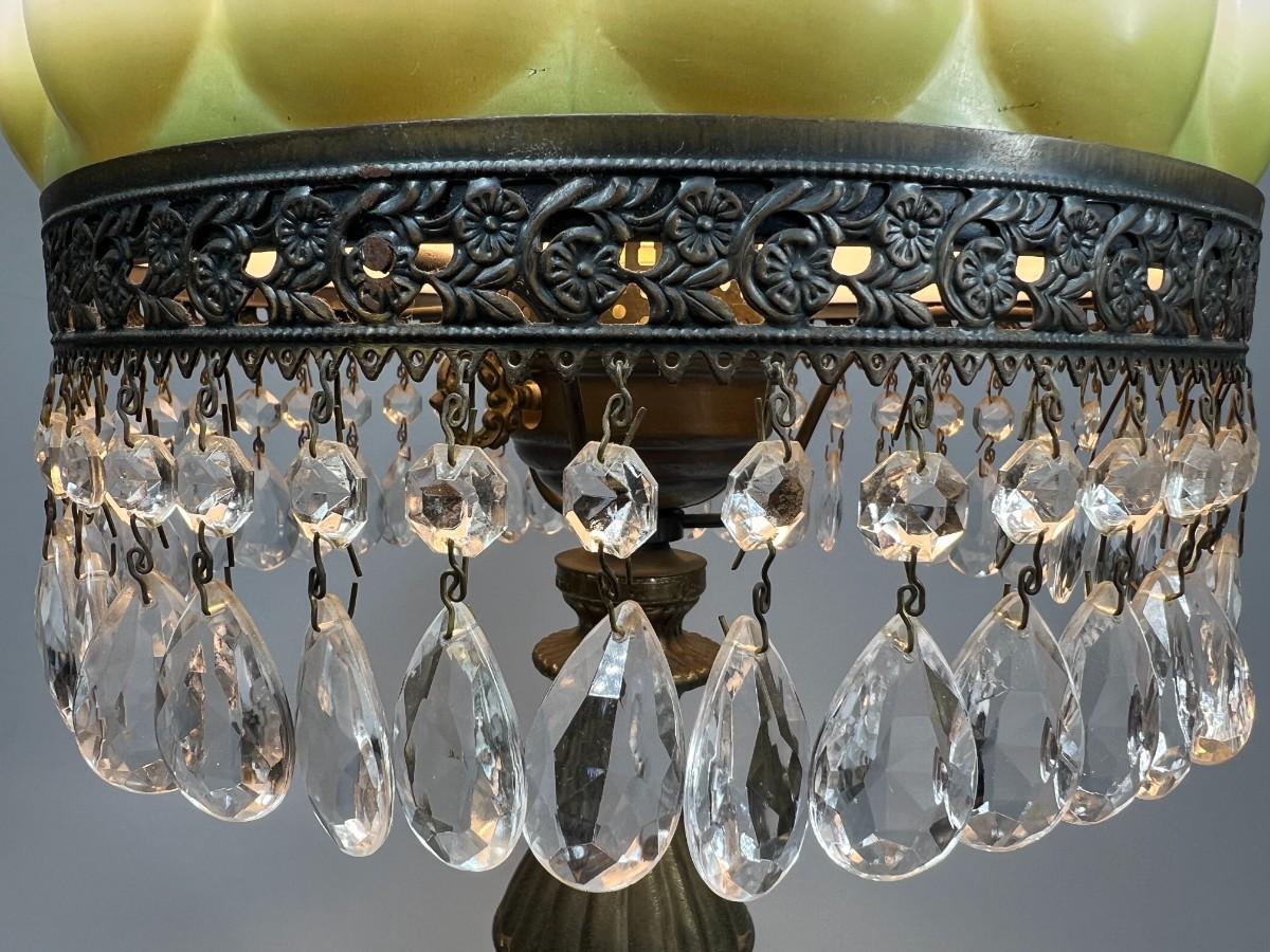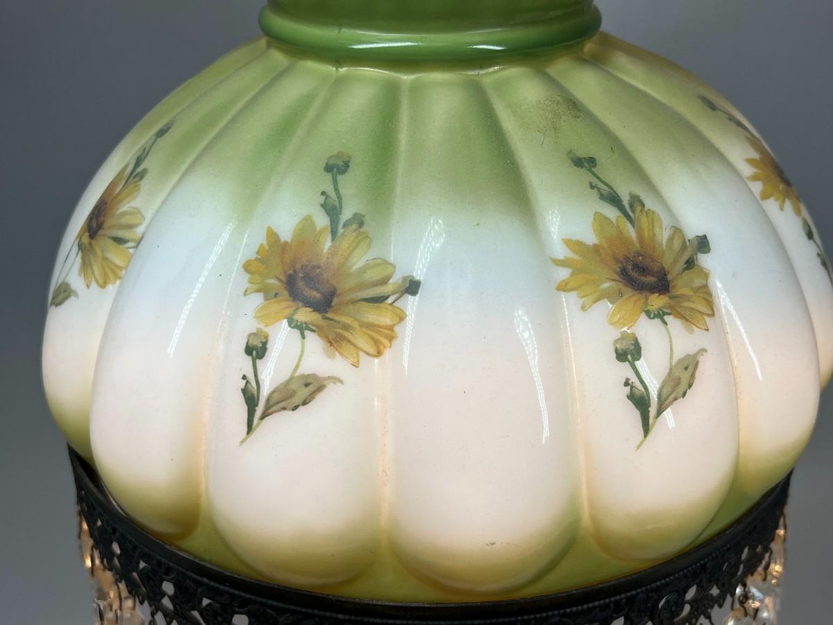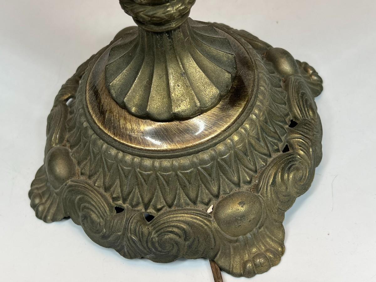 Vintage Hollywood Regency French Style Mid Century Brass Green Glass Flower Lamp Shade
