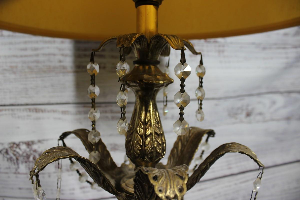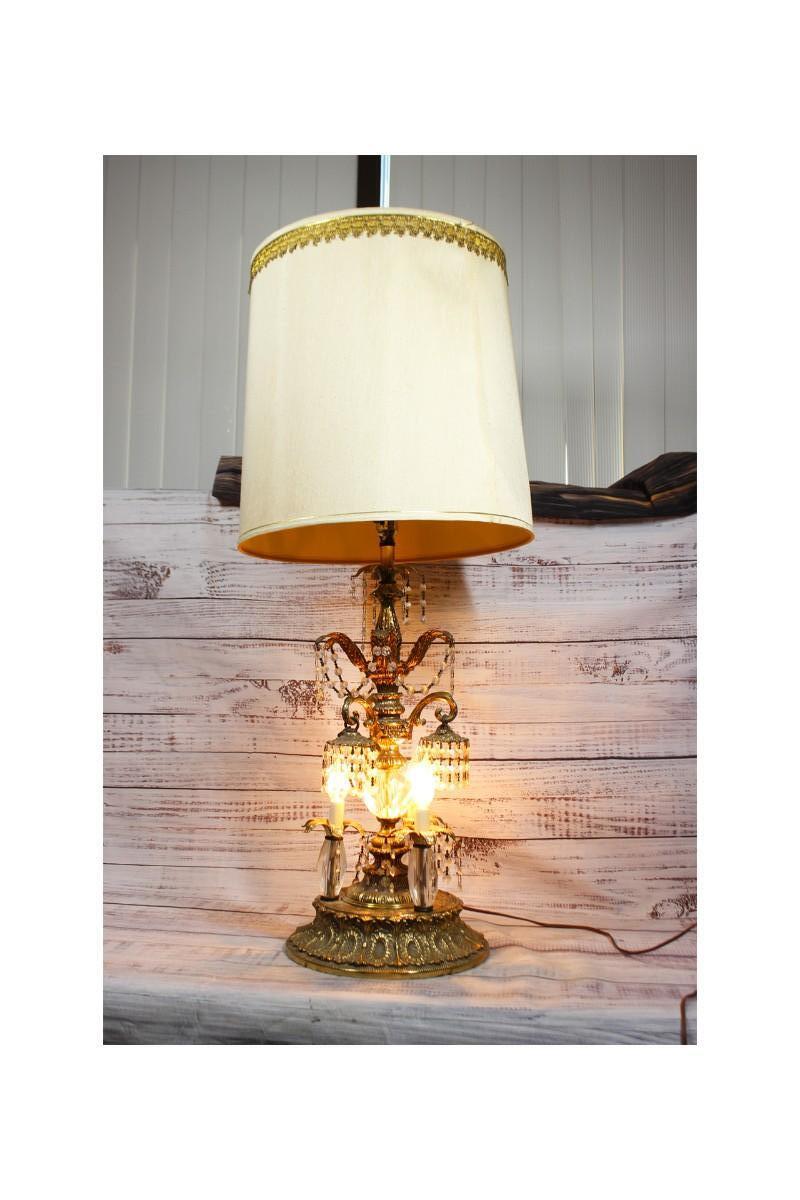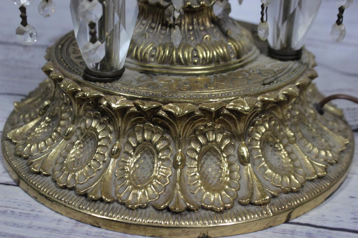 Vintage Hollywood Regency Mid Century Crystal & Brass Table Lamp Light
