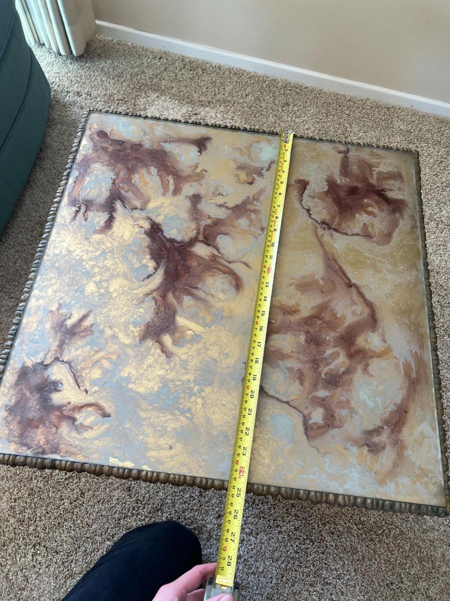 There is no significant damage to the side table and is in overall good collectible or displayable condition. Check pictures for more details and for sizing.