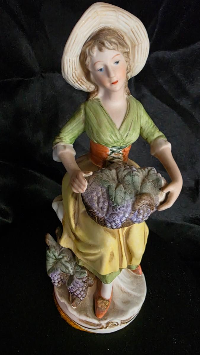 Whether displayed alone or alongside its companion figurine, this “Vineyard Harvest” lady brings warmth, history, and elegance to any setting. A true treasure from Treasures of Bako — where every collectible tells a story worth keeping.