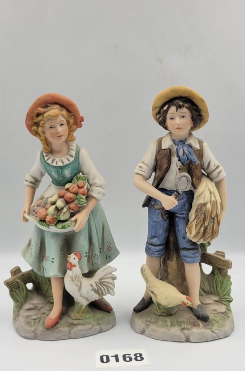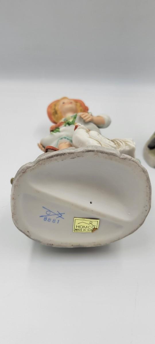 Homco Bisque Country Girl and Girl with Fruit Basket