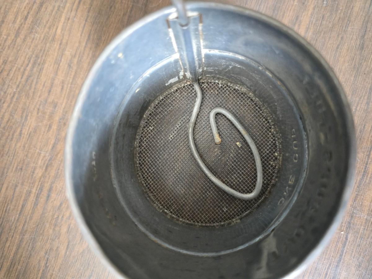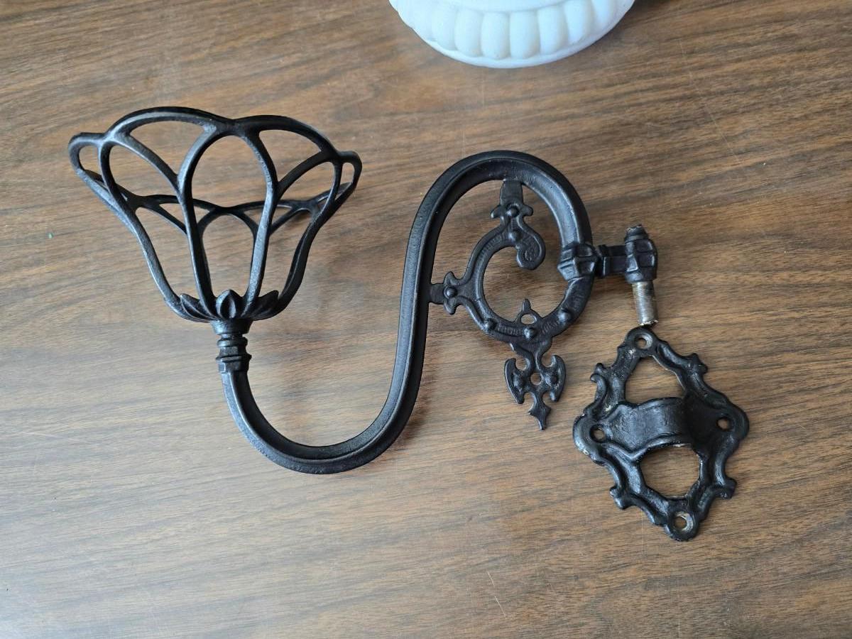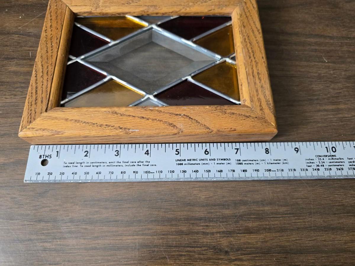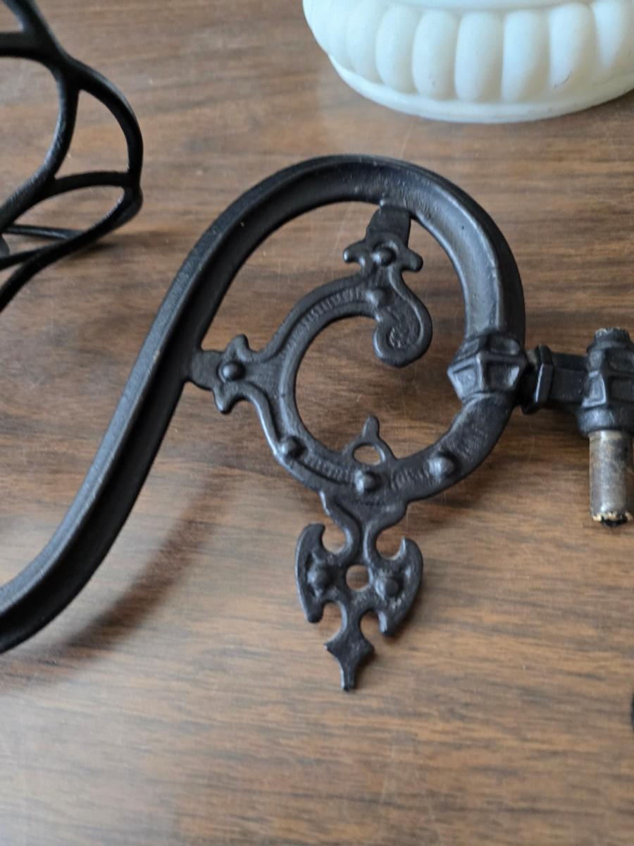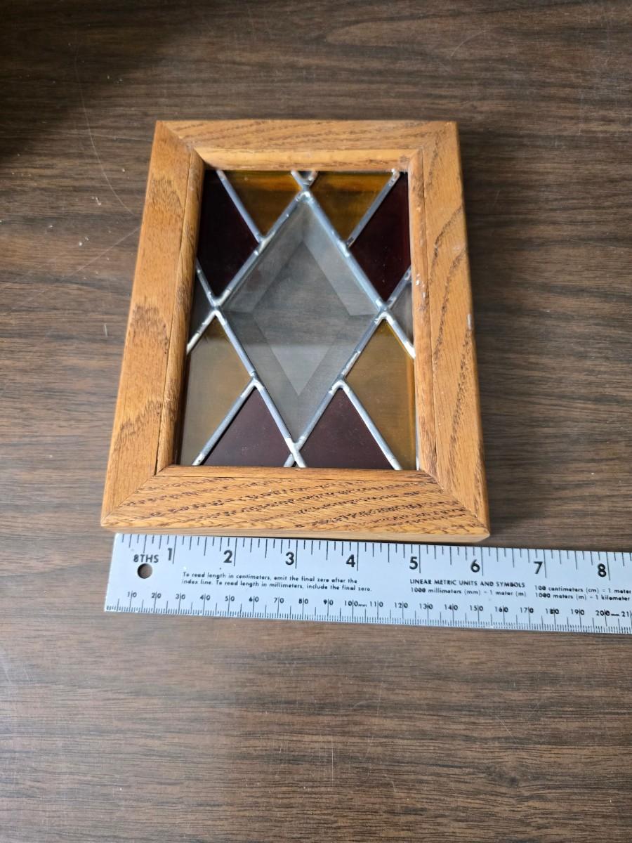 Vintage home decor - small stained glass - cast iron wall pocket with original hardware - old hand mixer - cheese box - copper bell and more
