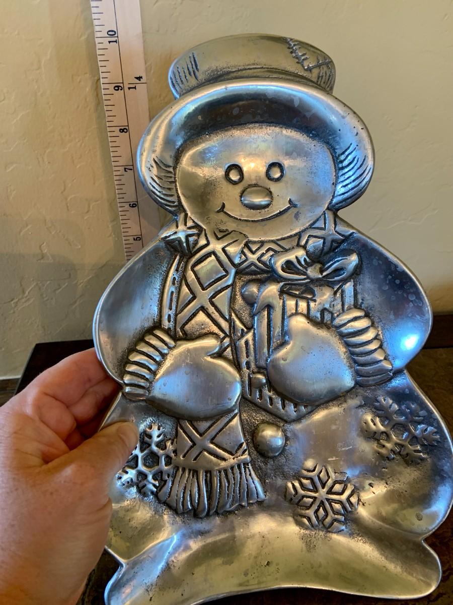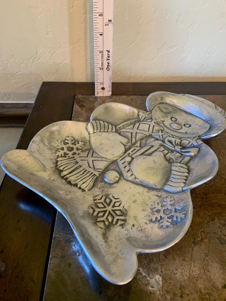 Silver tone snowman candy dish.