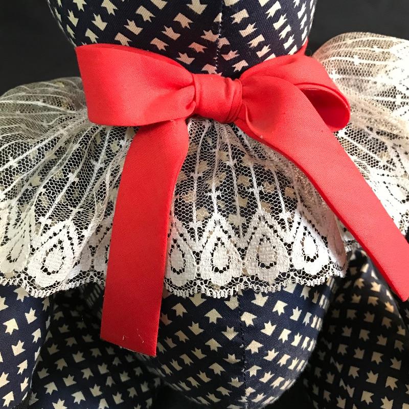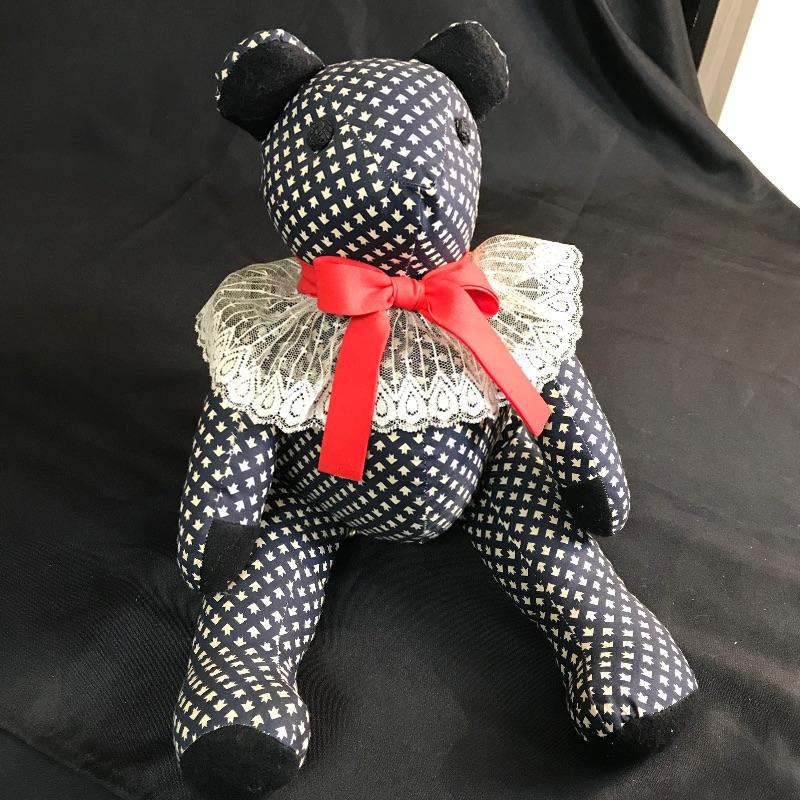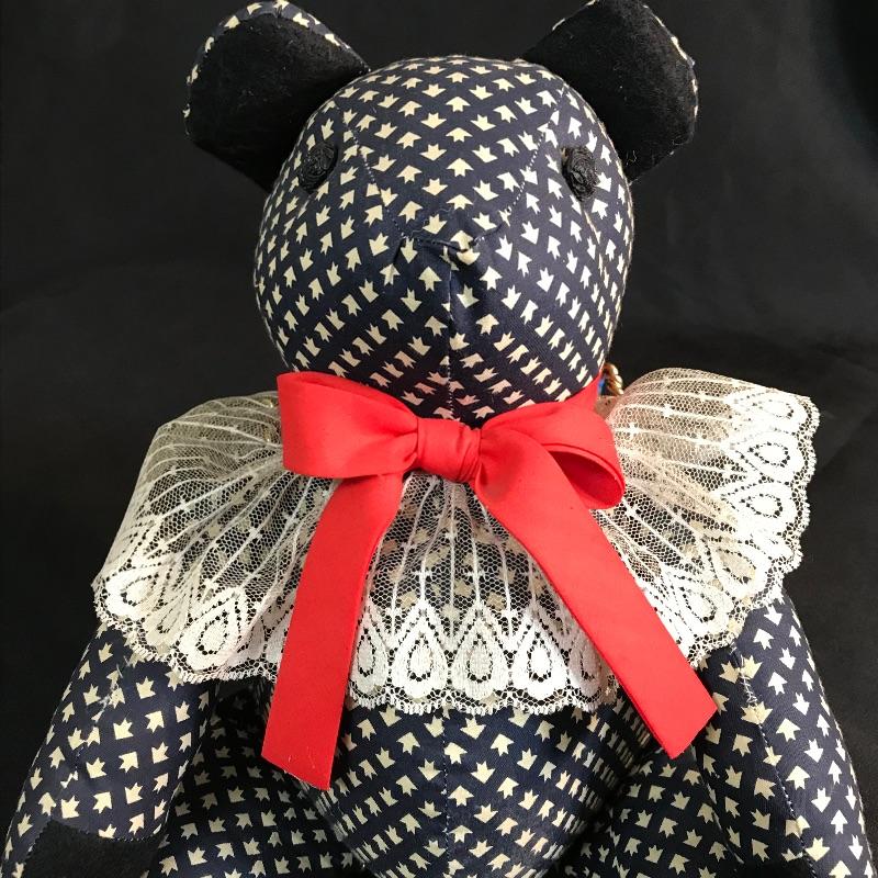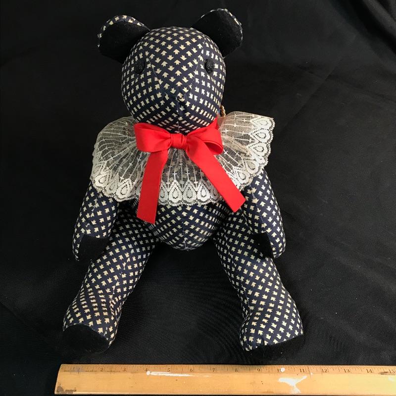 Bear is in excellent condition. It is believed to be homemade due to the irregularity of some of the stitches.