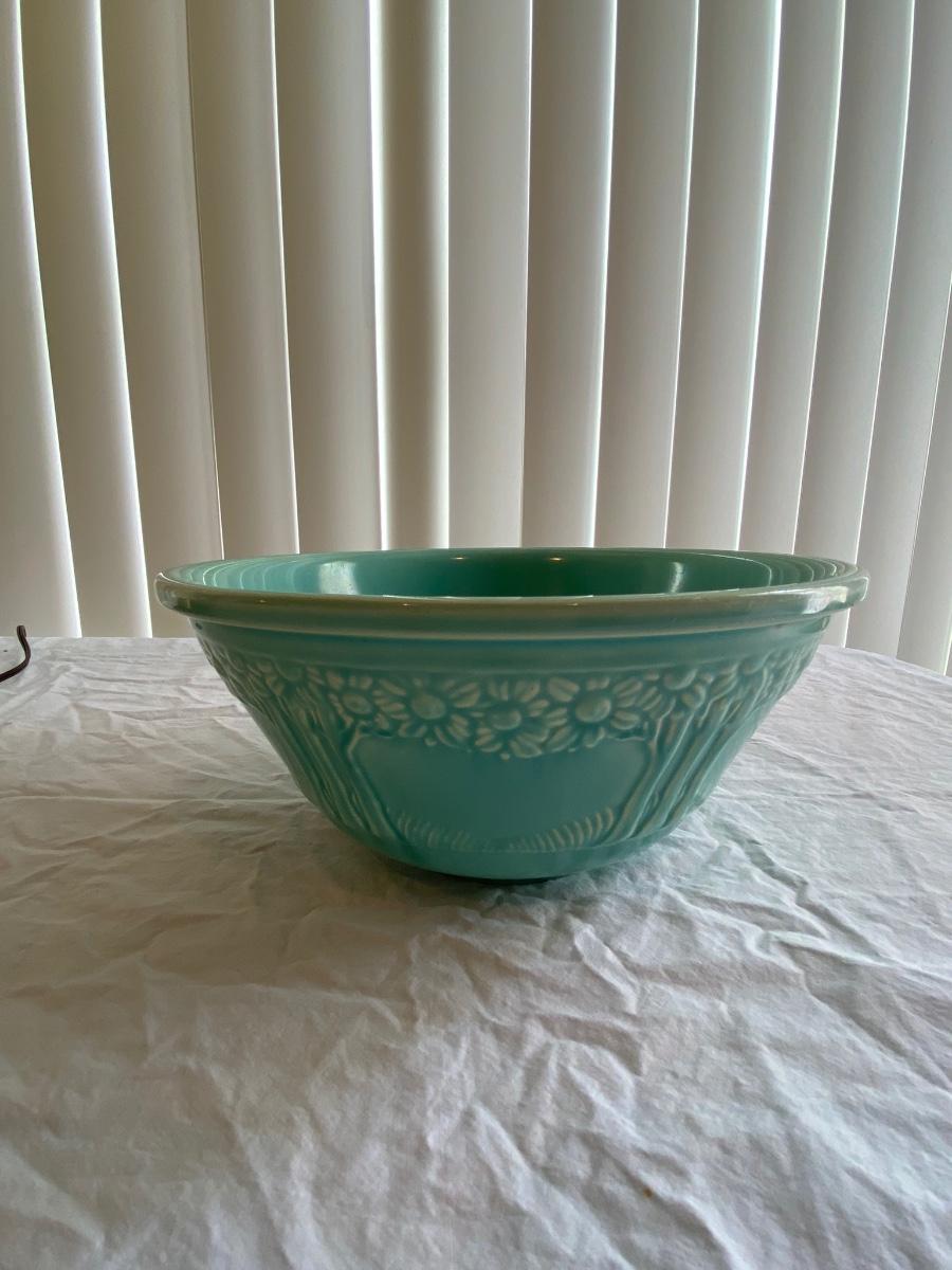 Vintage Homer Laughlin aqua mixing bowl. Exc condition. Approx 4”h x 8”dia