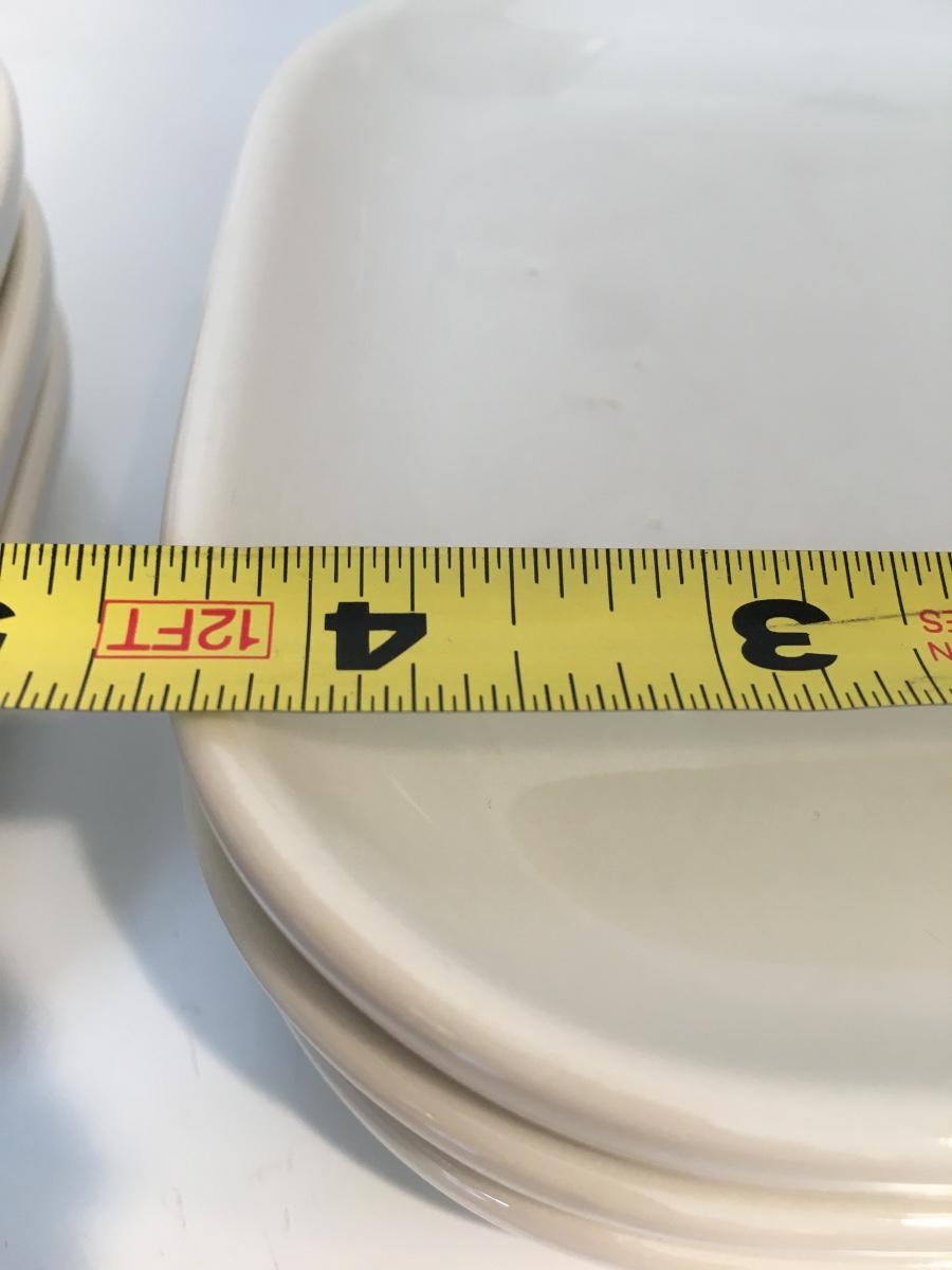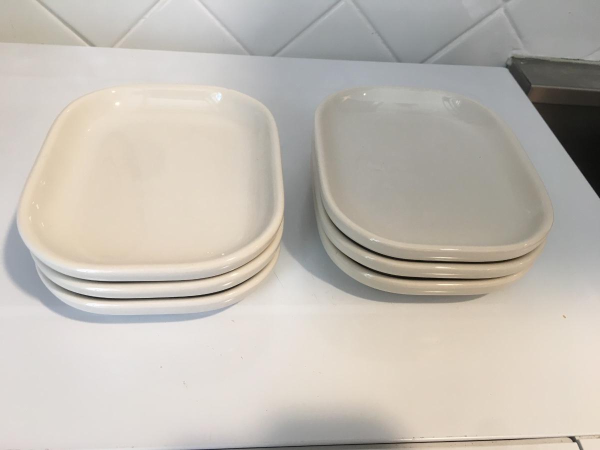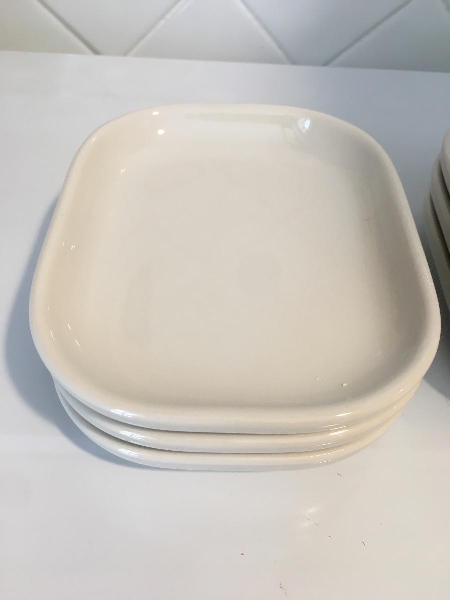 Set of 6 rectangular white side plates.