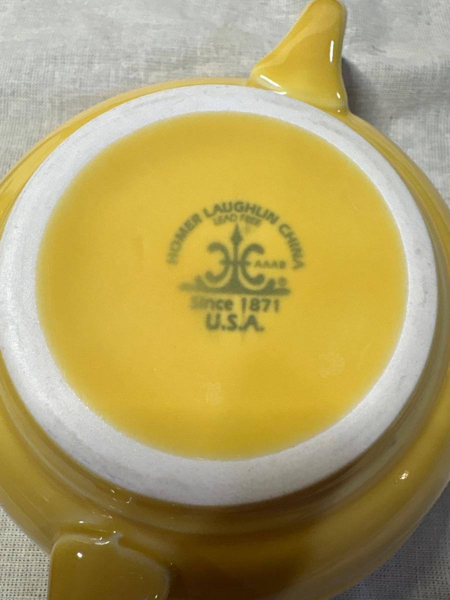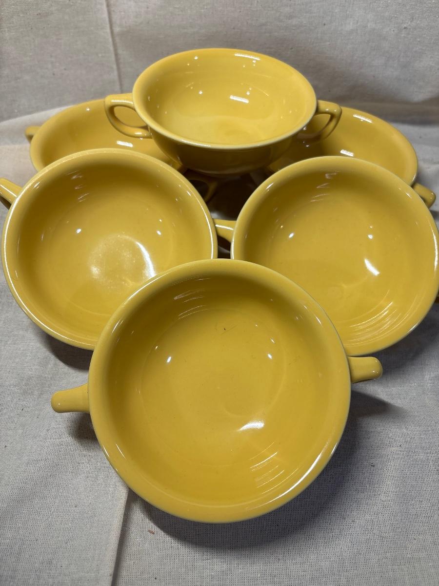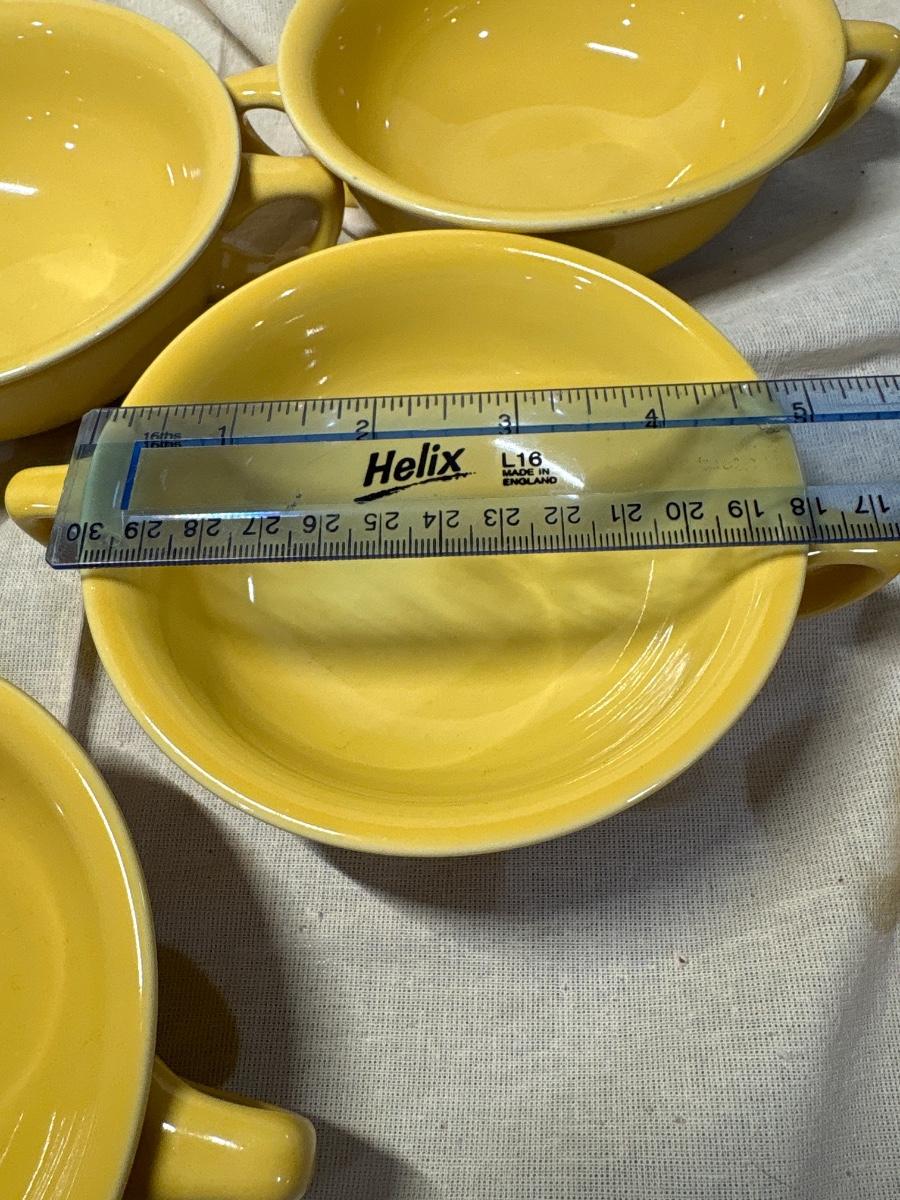 MCM Homer Laughlin yellow double handles 5” D soup bowls. Set of six.